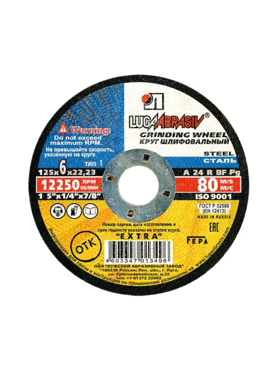 Вы можете приобрести «Круг зачистной LugaAbrasiv, BF, диаметр 125х6 мм, посадочный диаметр 22.23 мм, зернистость A24, R 80 м/с» и другие товары в нашем интернет-магазине в Старом Осколе по низким ценам и с бесплатным самовывозом.