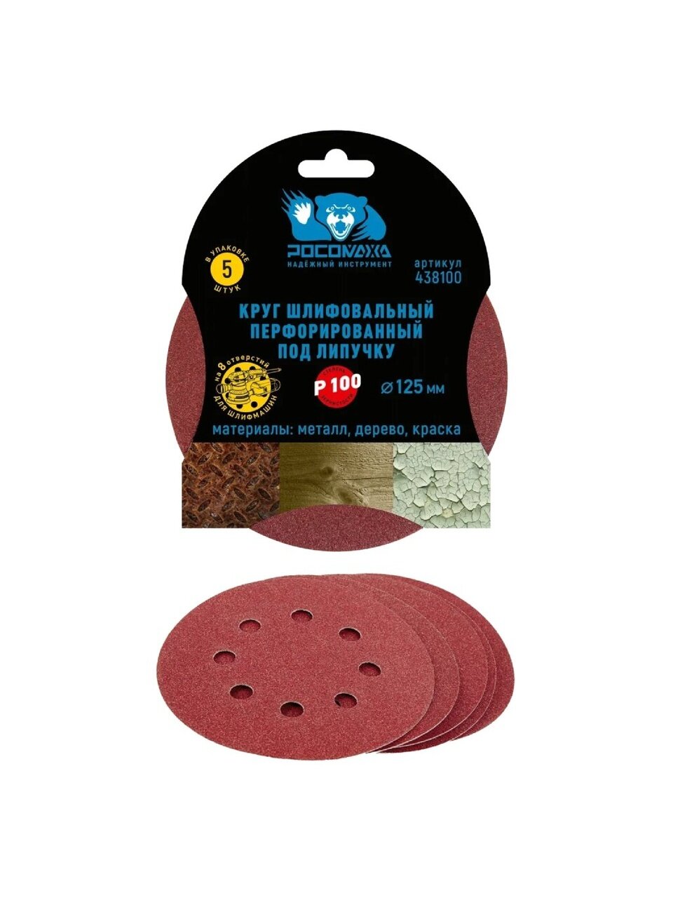 Вы можете приобрести «Круг абразивный Росомаха, диаметр 125 мм, зернистость P100, под липучку, перфорированный, 8 отверстий, 5 шт, 438100» и другие товары в нашем интернет-магазине в Смоленске по низким ценам и с бесплатным самовывозом.