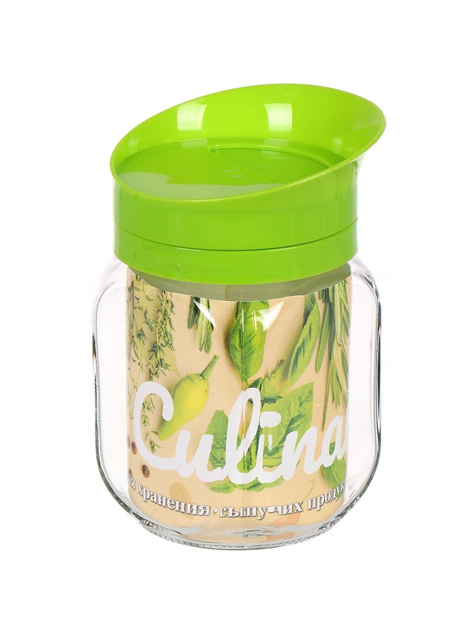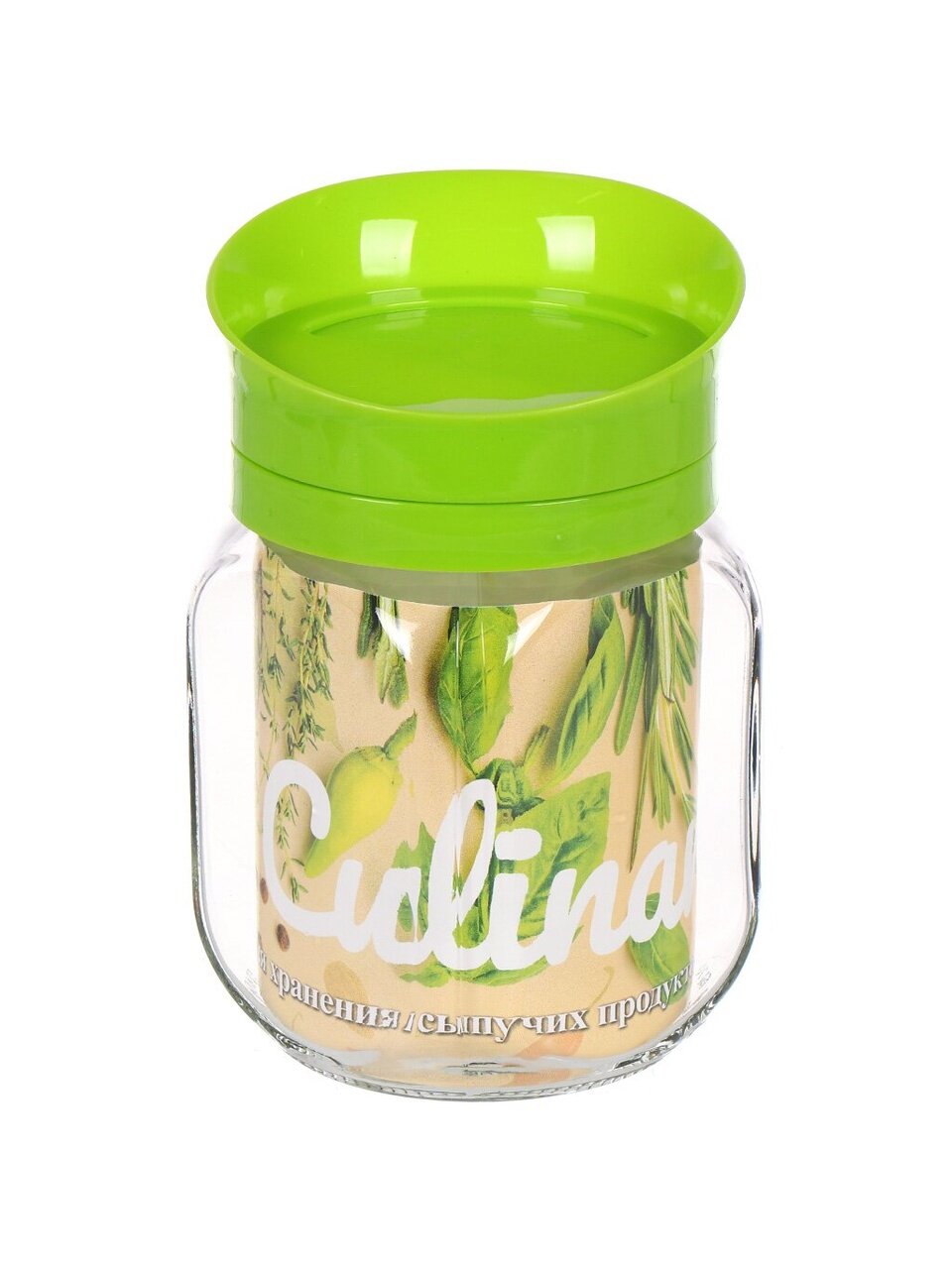 Крышка, плотно прилегающая к банке, защищает продукты от воздуха и влаги, сохраняя свежесть и аромат на долгое время. Банка выполнена из прочного материала, который не взаимодействует с продуктами, не впитывает запахи и не окрашивается.