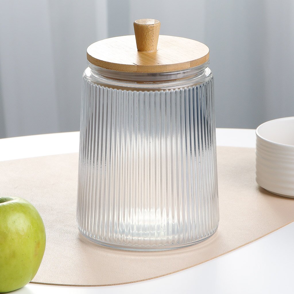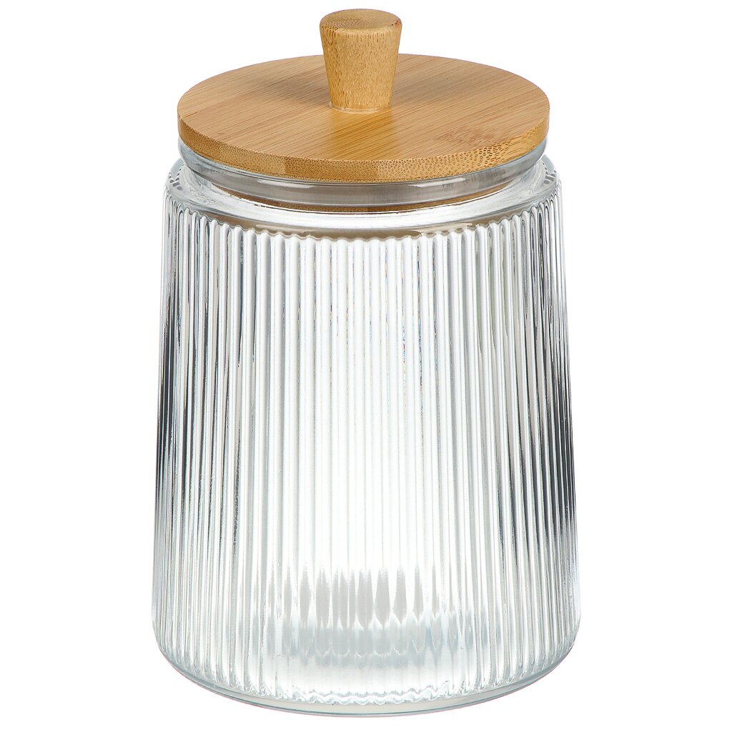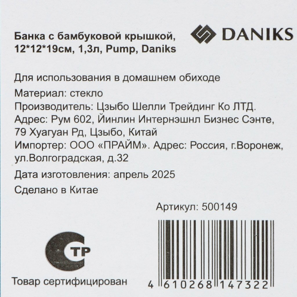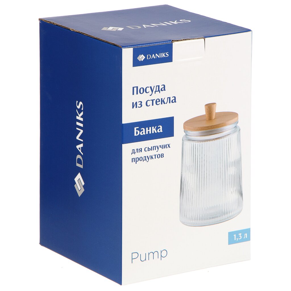 Стильная банка с бамбуковой крышкой Daniks 1,3 л — идеальное хранение круп, чая и сладостей без запахов и влаги. Безопасный материал, универсальный размер, экономия места.