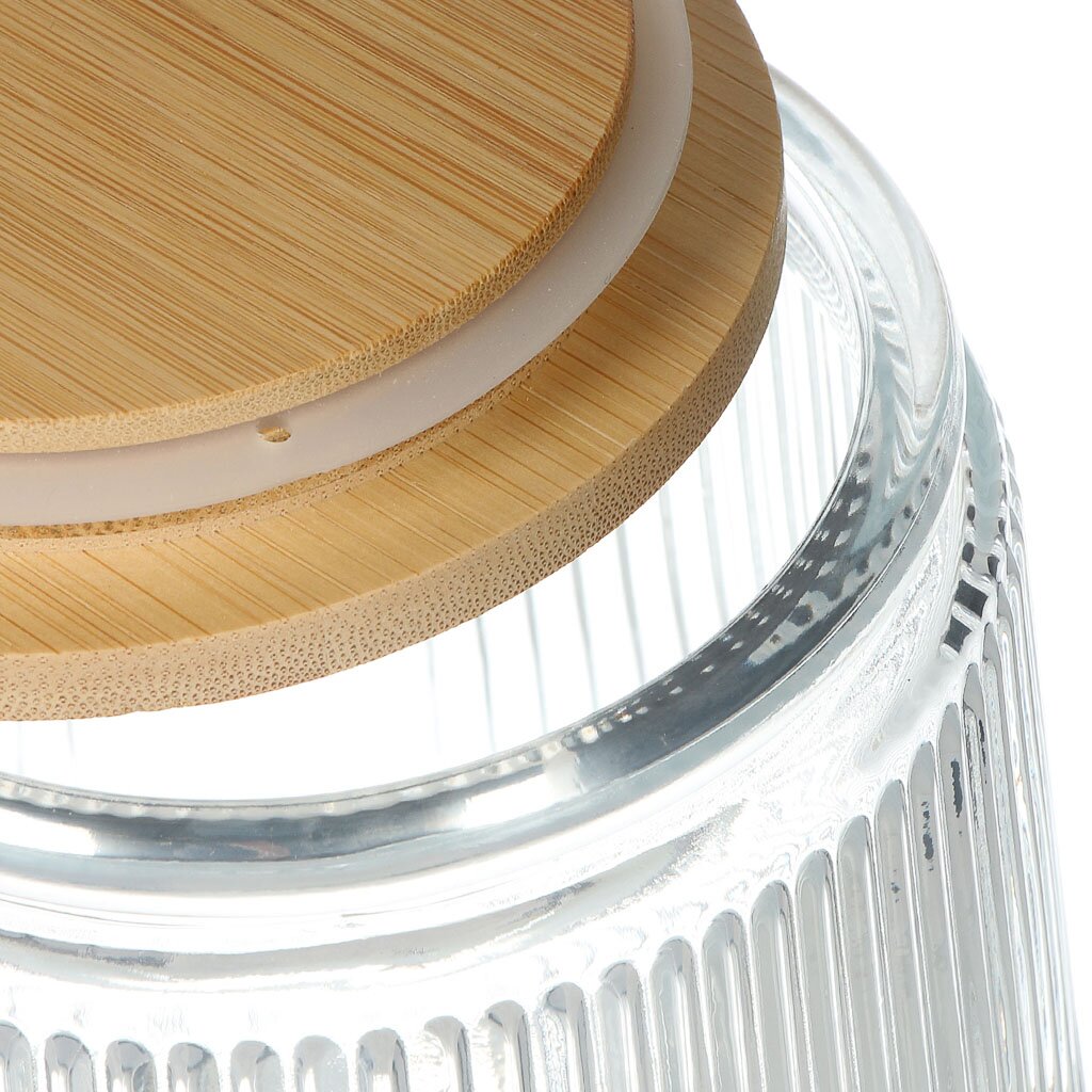 Бамбуковая крышка плотно закрывает банку, не пропускает влагу и запахи, сохраняет свежесть продуктов дольше, чем пластиковые аналоги.