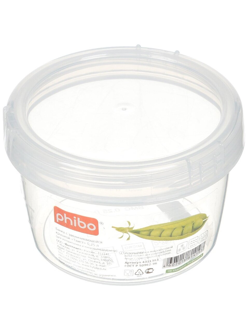 Банка «Твист» имеет винтовую крышку и подходит для хранения, замораживания и разогревания в микроволновой печи (без крышки) различных продуктов и готовых блюд. Наполненную банку можно перевозить, не опасаясь, что крышка откроется. Прозрачные корпус и крышка позволяют видеть содержимое, а мерная шкала на корпусе поможет определить объем продукта. Банки можно ставить одну на другую для экономии места в холодильнике или кухонном шкафу. Можно мыть в посудомоечной машине.