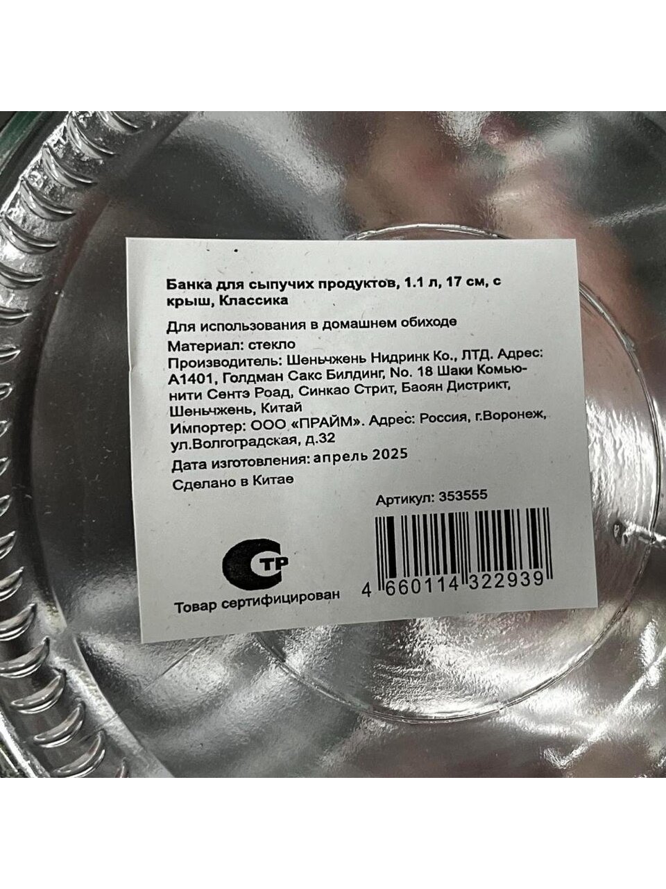 Вы можете приобрести «Банка для сыпучих продуктов, стекло, 1.1 л, 17 см, с крышкой, Классика, Y4-3575» и другие товары в нашем интернет-магазине в Клинцах по низким ценам и с бесплатным самовывозом.