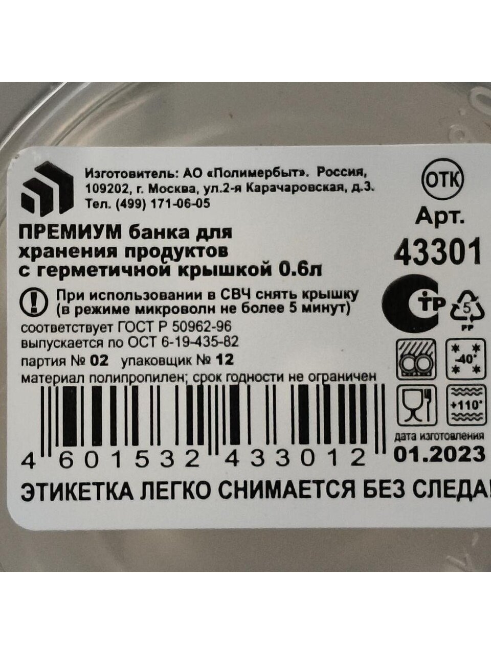 Вы можете приобрести «Банка для сыпучих продуктов, пластик, 0.6 л, с крышкой, Полимербыт, Премиум, С43301, в ассортименте» и другие товары в нашем интернет-магазине в Орле по низким ценам и с бесплатным самовывозом.