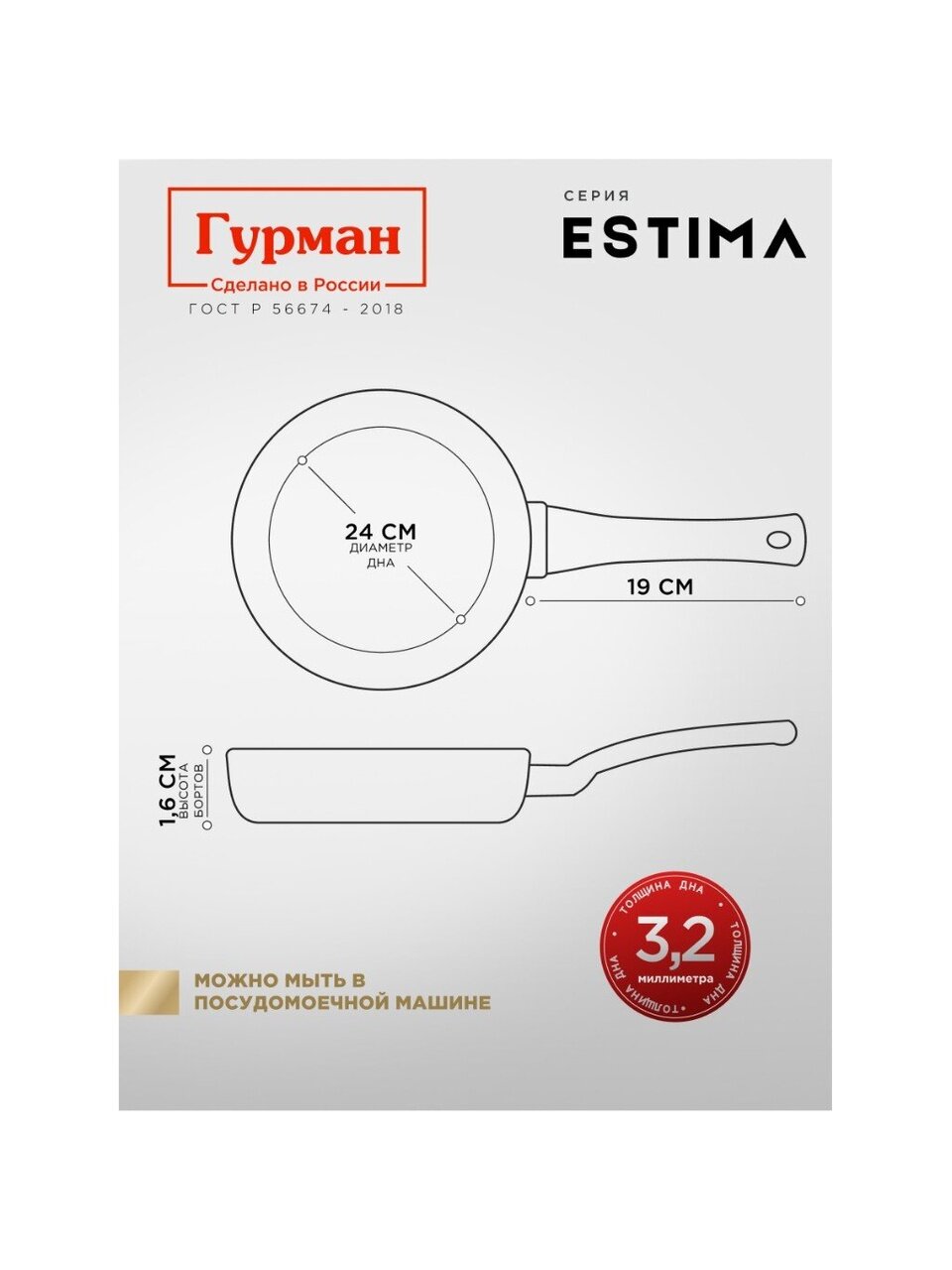 - Толщина дна, мм3.2 мм