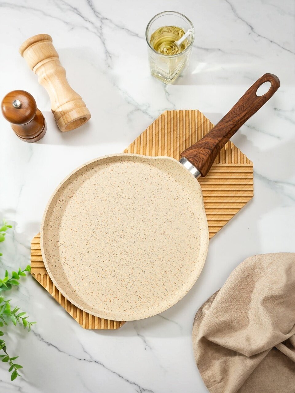 Блинница выполнена в стильном бежевом цвете, что добавит изысканности и уюта в интерьер кухни. Она не только функциональна, но и эстетична, что делает ее отличным выбором для тех, кто ценит красоту и практичность в одном изделии.