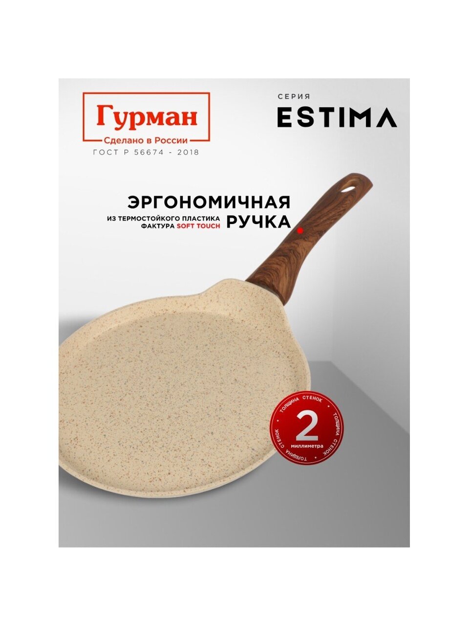 Вы можете приобрести «Блинница алюминий, 24 см, антипригарное покрытие, Гурман, Estima, бежевая, ГМб241 ЭБИ, пластиковая ручка, индукция» и другие товары в нашем интернет-магазине в Борисоглебске по низким ценам и с бесплатным самовывозом.