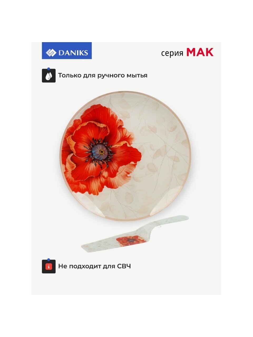 Набор для торта Daniks Мак: стеклянное блюдо 30 см и лопатка — стильный подарок и практичное решение для сервировки, выгодно подчеркнёт любой десерт.