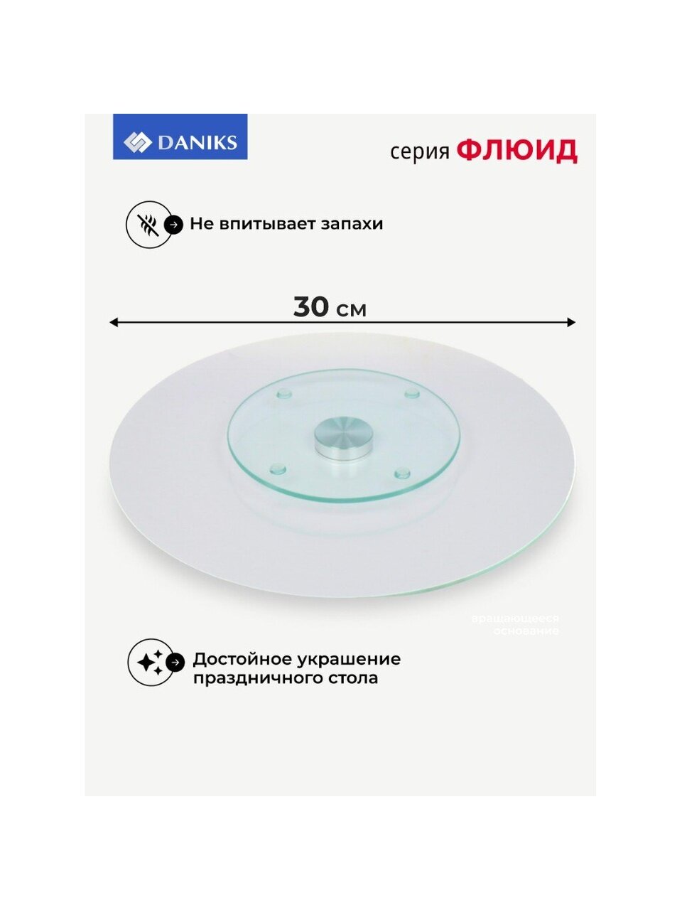 Часто спрашивают, как использовать круглое вращающееся блюдо: оно идеально подходит для нарезки, сырных и мясных тарелок, подачи десертов и закусок. В отличие от аналогов из дерева или пластика, стекло не впитывает запахи, легко очищается и сохраняет презентабельный вид. Для тех, кто выбирает, какое блюдо лучше для сервировки на праздник — обратите внимание на этот вариант: прочное стекло, диаметр 30 см, универсальный дизайн.