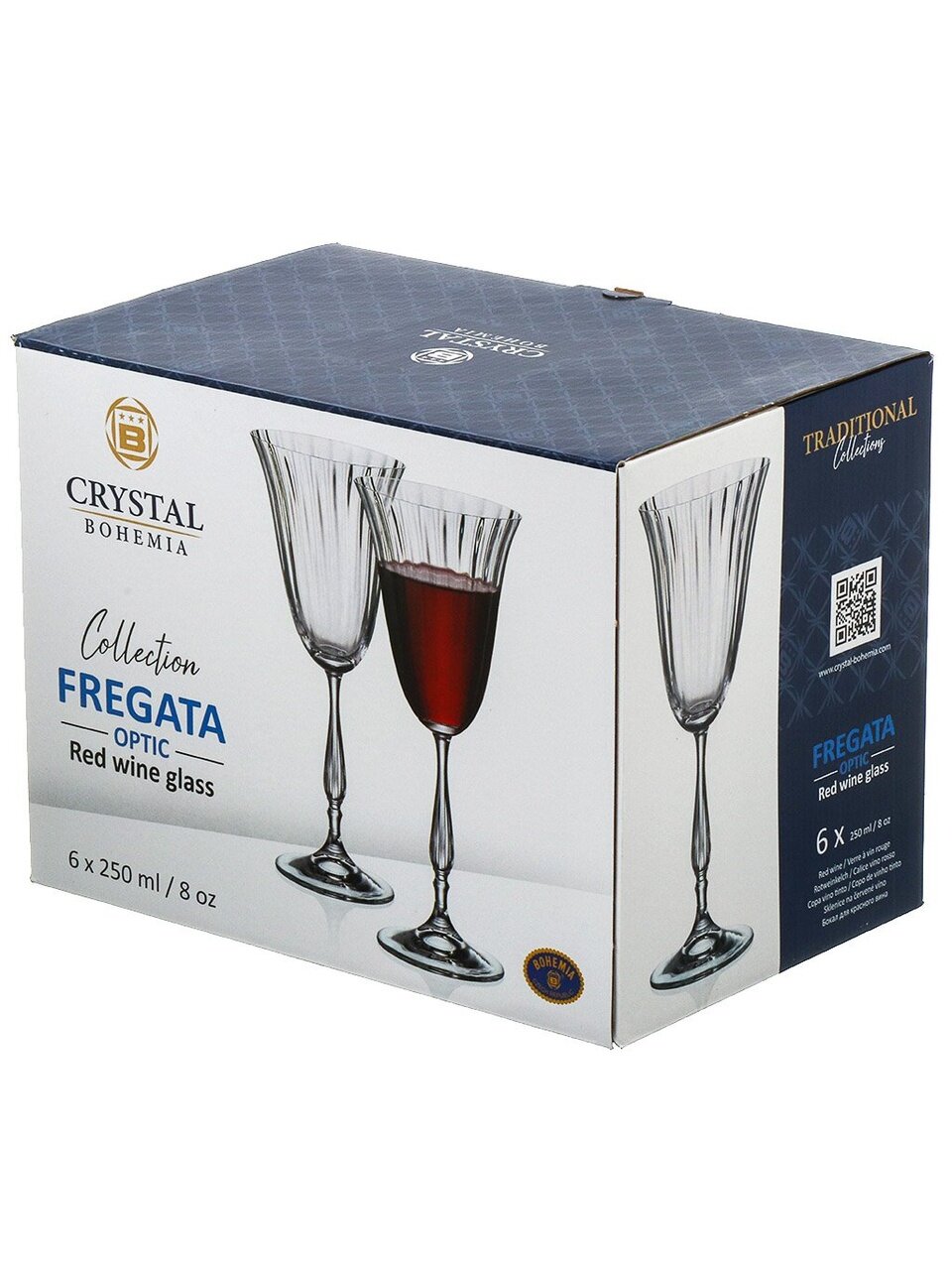 Бокалы для вина Fregata Optic 250 мл (6 шт): стильная сервировка для дома и подарка, рельефное стекло, подходит для посудомоечной машины.