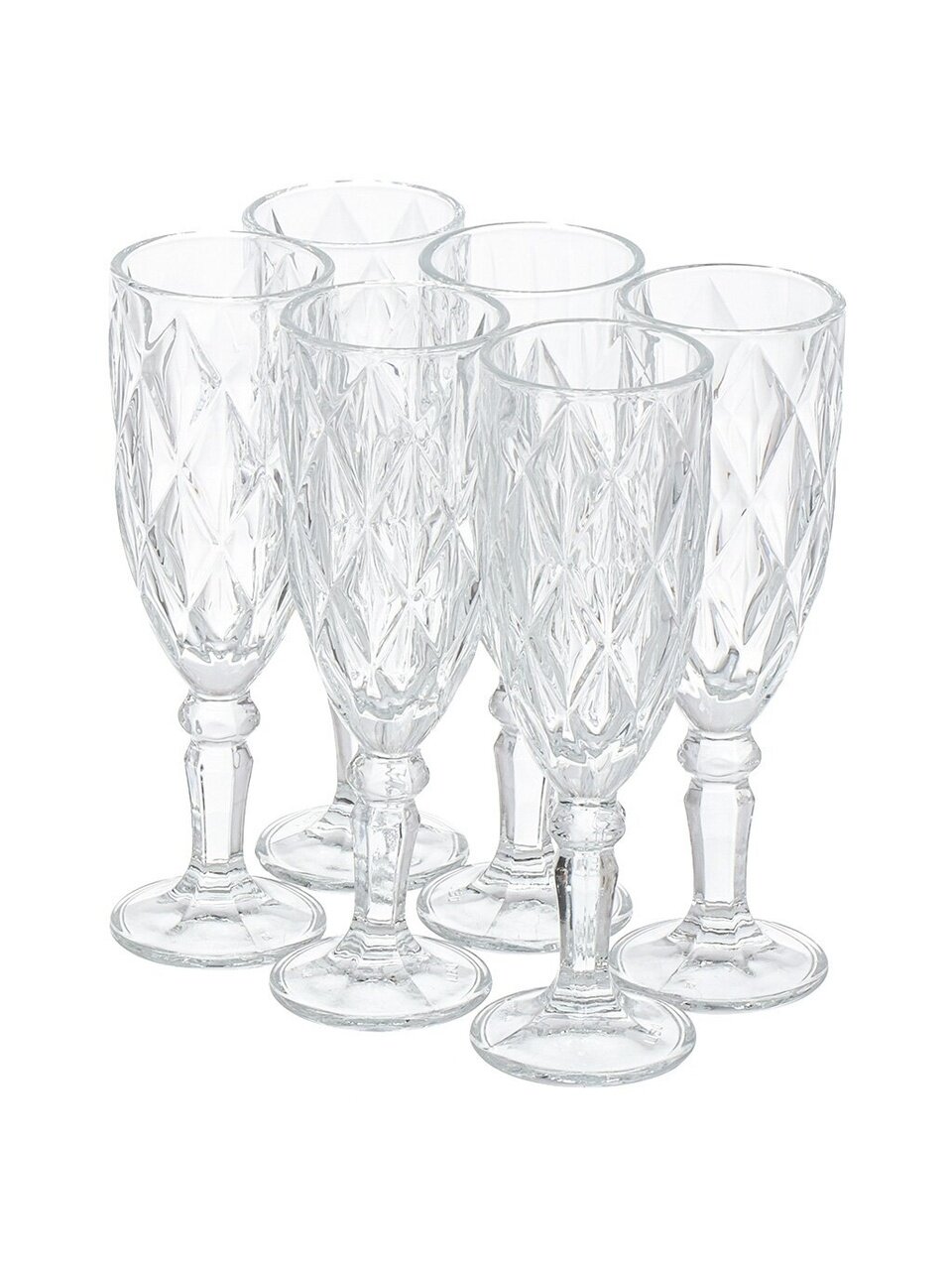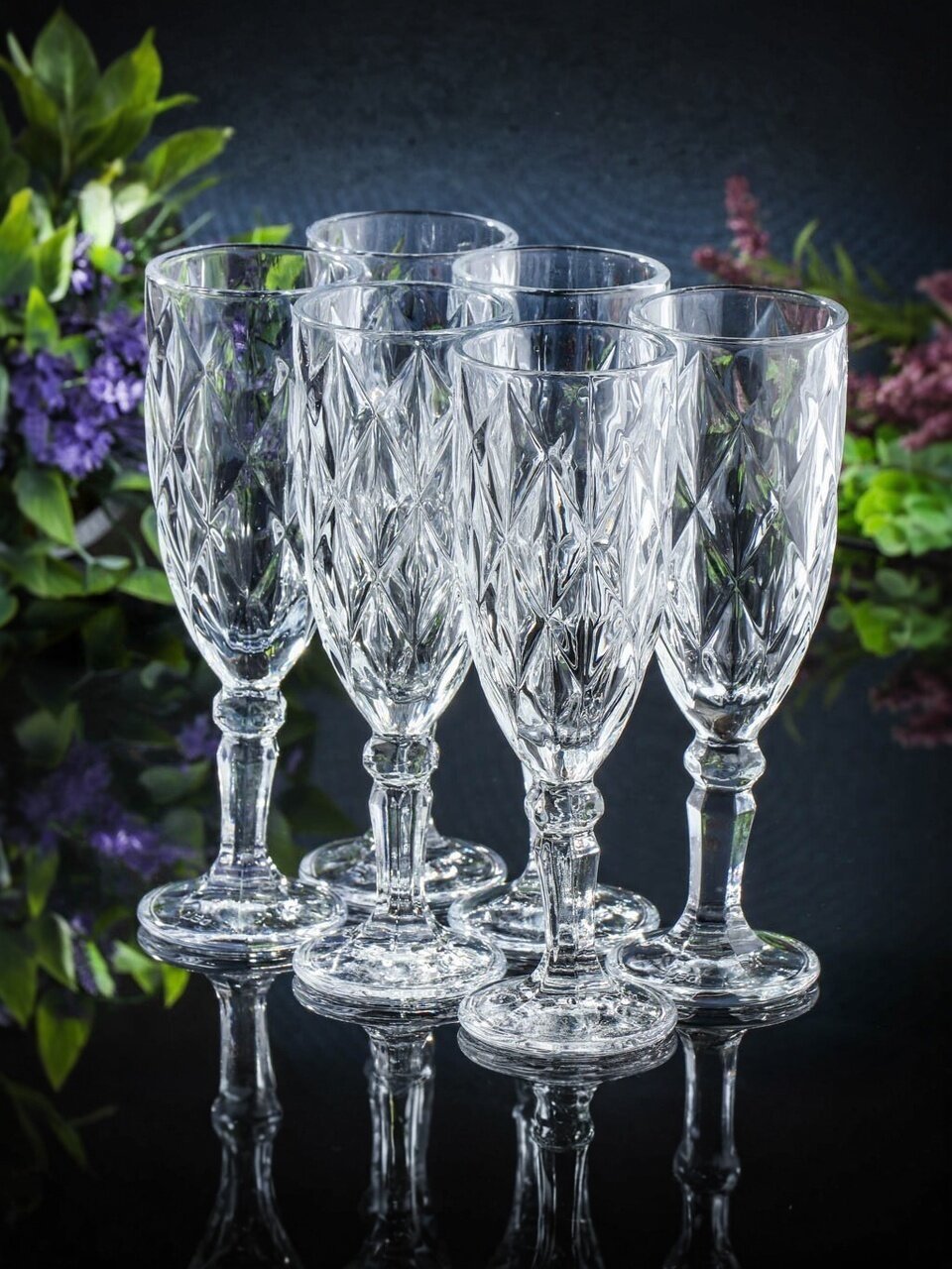Бокалы для шампанского 165 мл, 6 шт, "Грани" — стильный подарок и изысканная сервировка для праздника и дома. Прессованное рельефное стекло, подходит для посудомоечной машины.