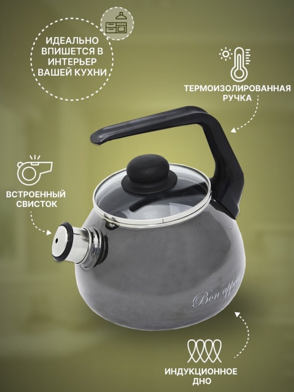 Покупатели часто спрашивают: "Как выбрать чайник для индукции?", "Подходит ли такой чайник для дачи или подарка?", "Чем отличается эмалированное покрытие?". Vitross Bon Appetit сочетает в себе прочность стали, простоту ухода и современный дизайн. В отличие от алюминиевых или пластиковых аналогов, эмалированная сталь не впитывает запахи, устойчива к царапинам и прослужит долгие годы даже при активном использовании. Свисток своевременно оповестит о закипании воды, а объём 3 литра оптимален для семьи или компании гостей.