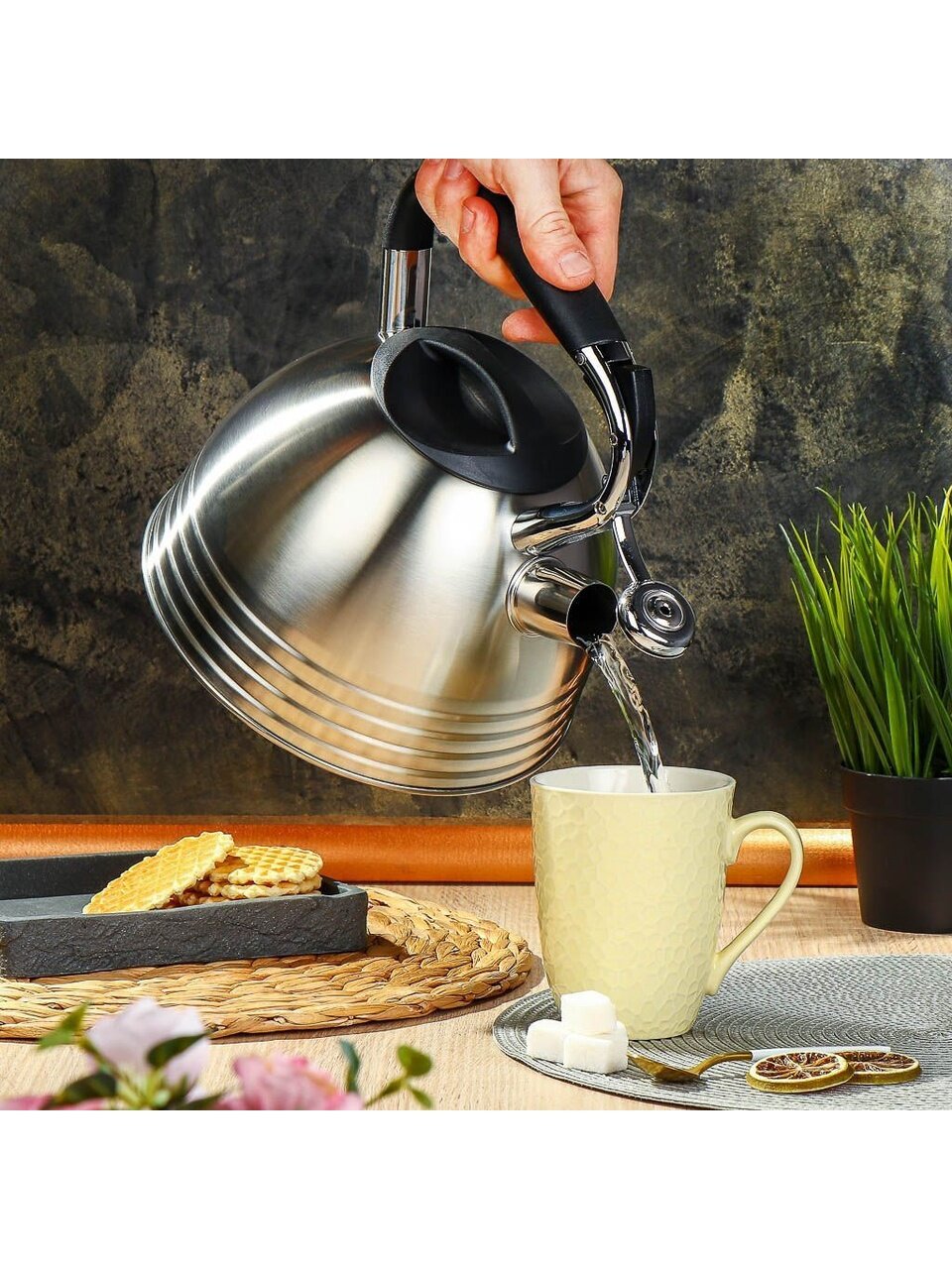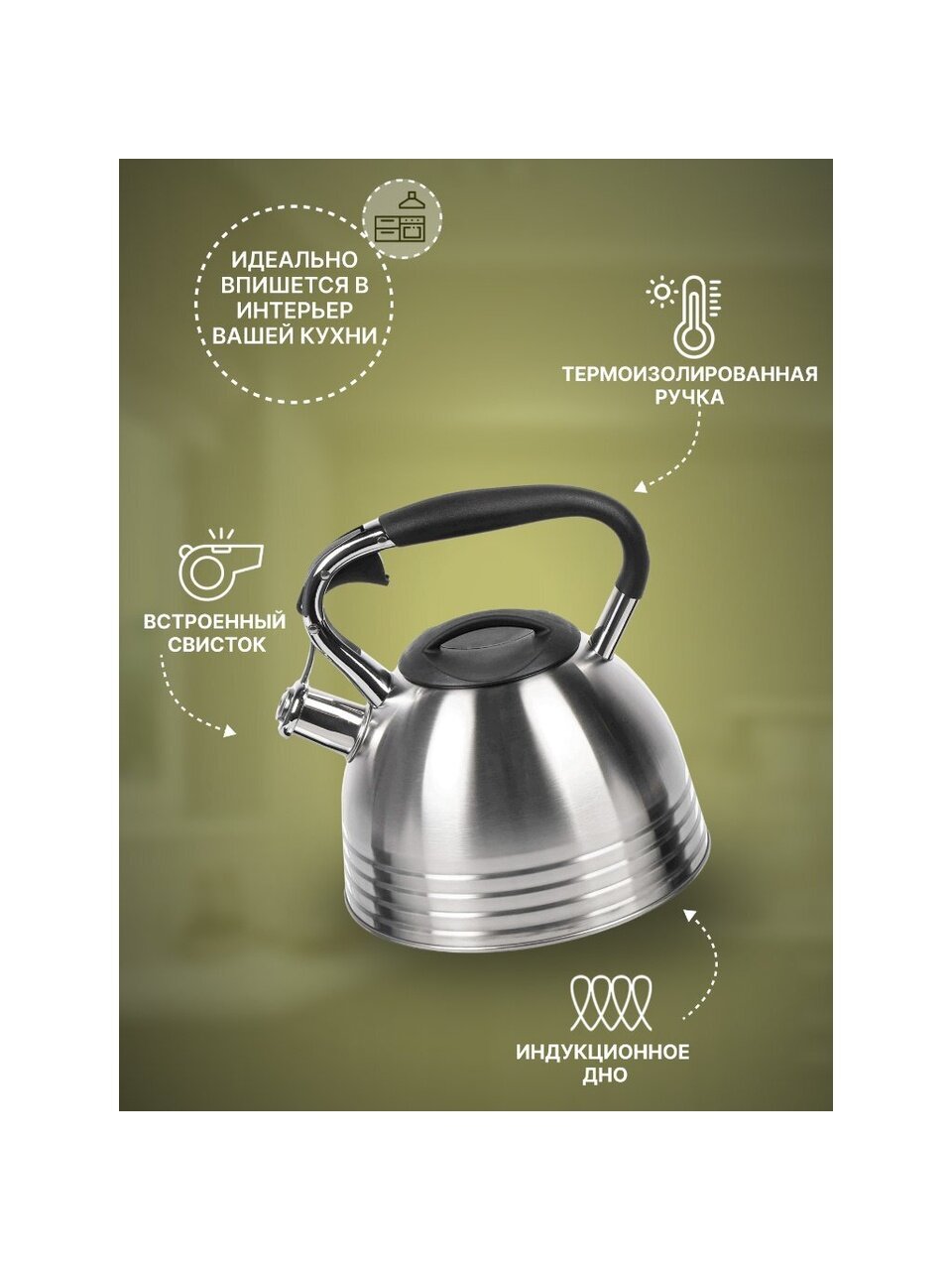 Чайник со свистком Daniks - традиционный элемент кухни. Выглядит стильно и привлекательно, благодаря лаконичному дизайну он легко впишется в разнообразные интерьеры.