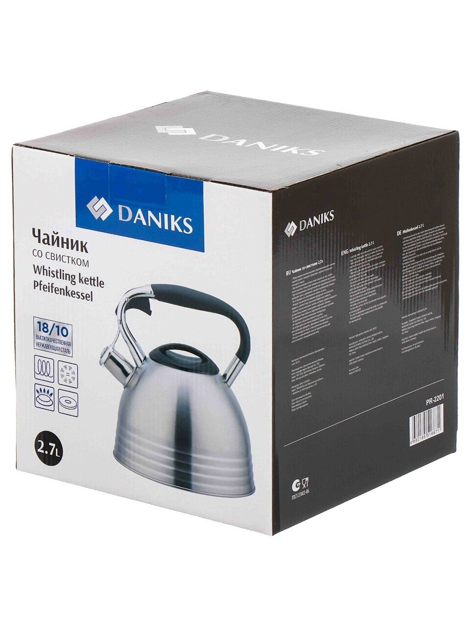 Вы можете приобрести «Чайник нержавеющая сталь, 2.7 л, со свистком, матовый, ручка с силиконовым покрытием, Daniks, индукция, PR-2201» и другие товары в нашем интернет-магазине в Нижнем Новгороде по низким ценам и с бесплатным самовывозом.