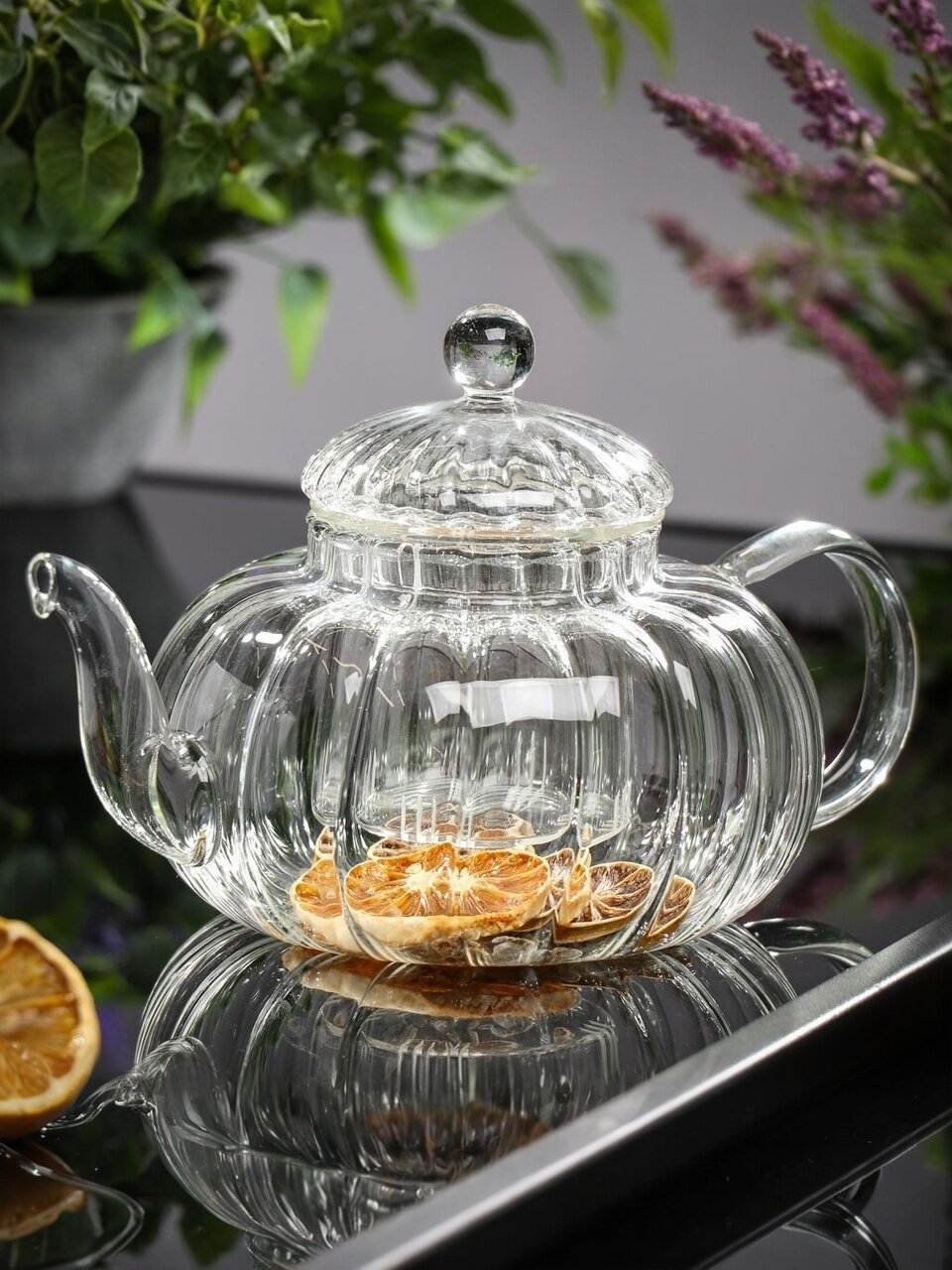 Рифленый стеклянный чайник, без сомнений, придется по вкусу любителям чаепитий. Прозрачные стенки позволят наблюдать завораживающий процесс раскрытия чайных листьев. Съемная колба не позволит чаинкам попасть в напиток.