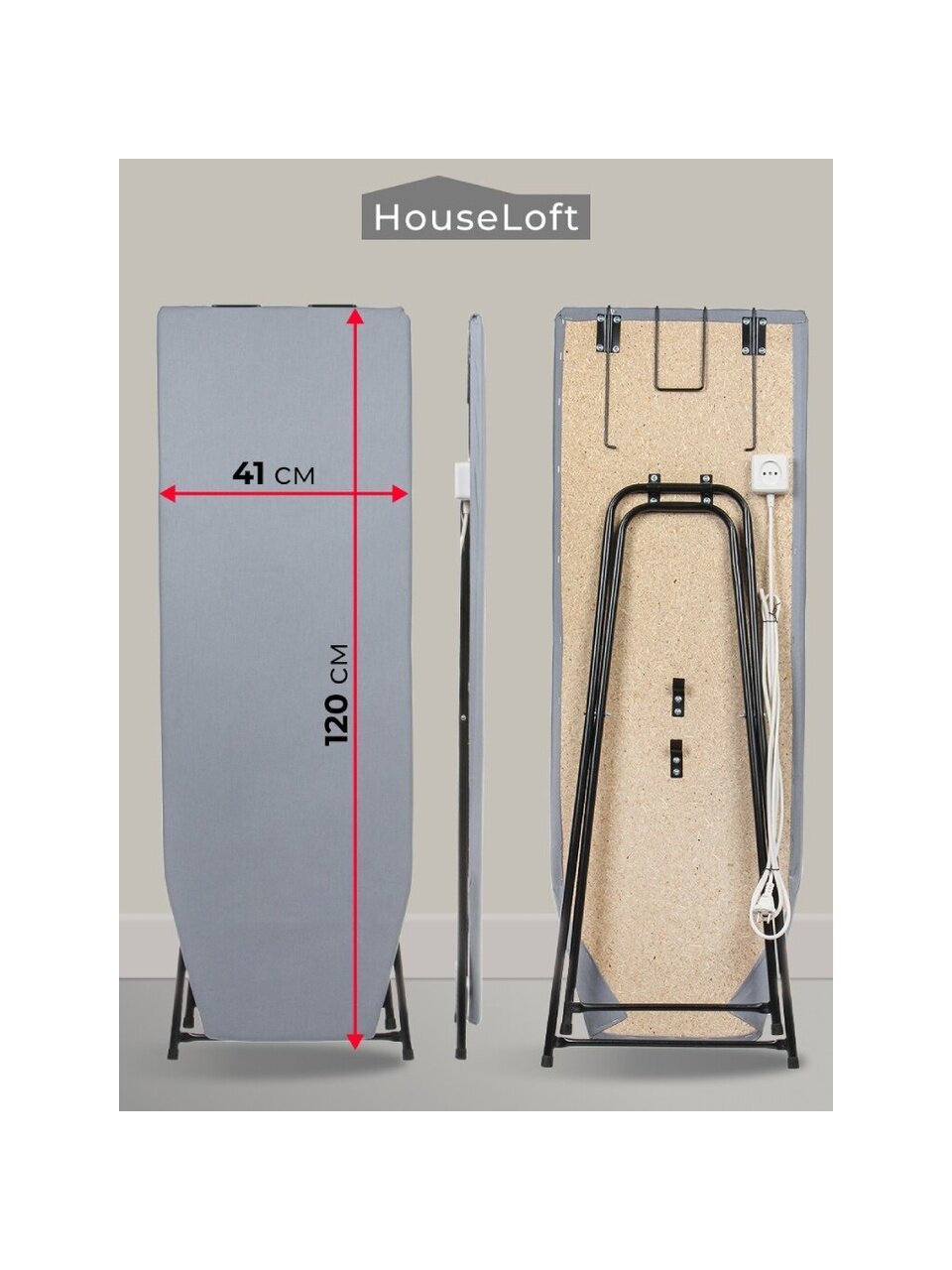 Гладильная доска House Loft КСПУ-05-1 обладает оптимальными размерами гладильной поверхности 120х41 см, что делает процесс глажки более удобным и быстрым. Столешница из ДСП обеспечивает прочность и устойчивость, а хлопковый чехол гарантирует бережное отношение к тканям. Встроенная подставка для утюга позволяет безопасно размещать утюг во время работы, а полка для белья обеспечивает дополнительное удобство и экономию пространства.