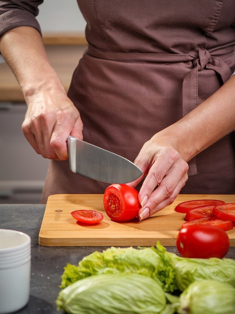 - Поверхность гладкая и не скользкая, что обеспечивает безопасность при работе с ножом.