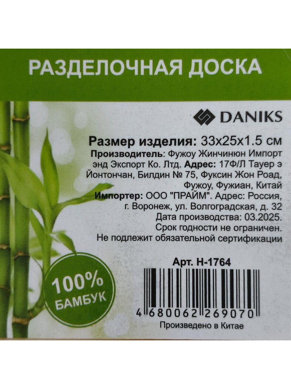Вы можете приобрести «Доска разделочная бамбук, 33х25х1.5 см, прямоугольная, Daniks, H-1764» и другие товары в нашем интернет-магазине в Белгороде по низким ценам и с бесплатным самовывозом.