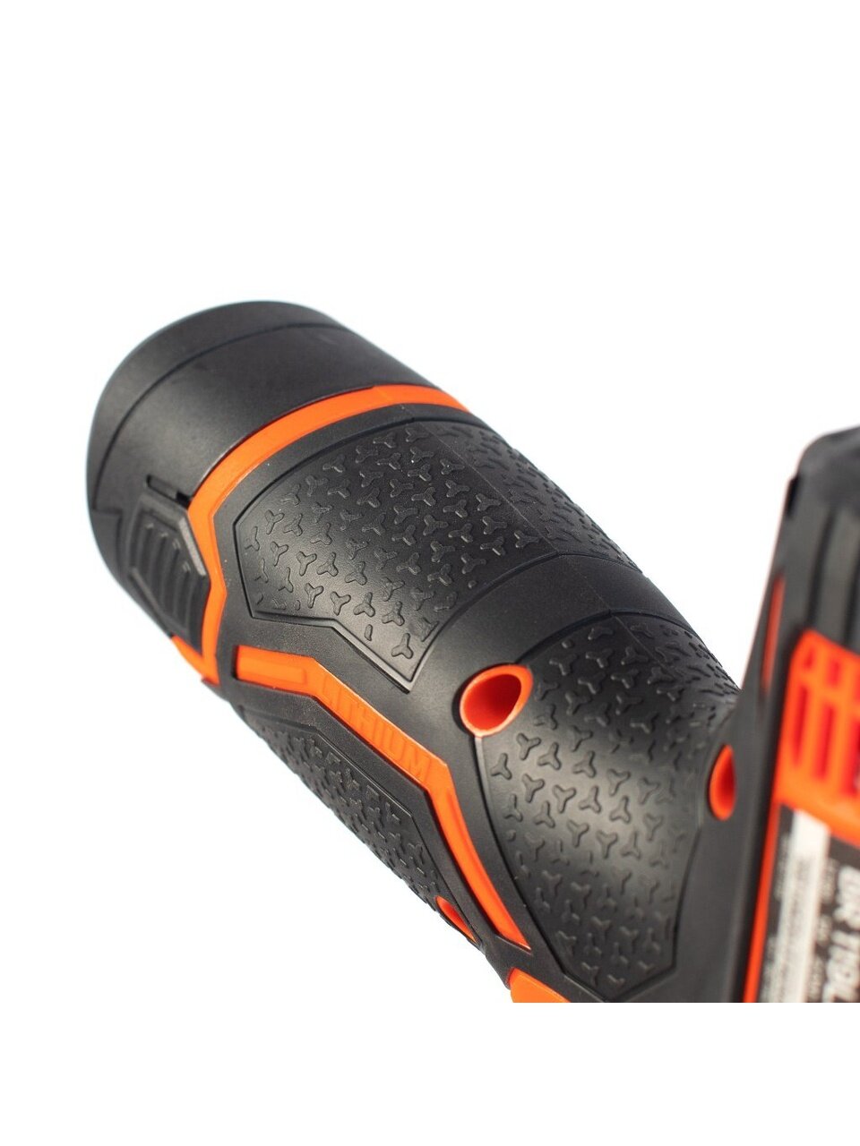 Щеточный двигатель обеспечивает высокую производительность и долговечность инструмента, а тормоз двигателя позволяет быстро остановить вращение патрона при необходимости. Аккумуляторная батарея имеет напряжение 12 В и емкость 2 Ач, что гарантирует продолжительное время работы без подзарядки. Время зарядки составляет от 1 до 1,5 часа, что достаточно быстро для инструмента такого класса.