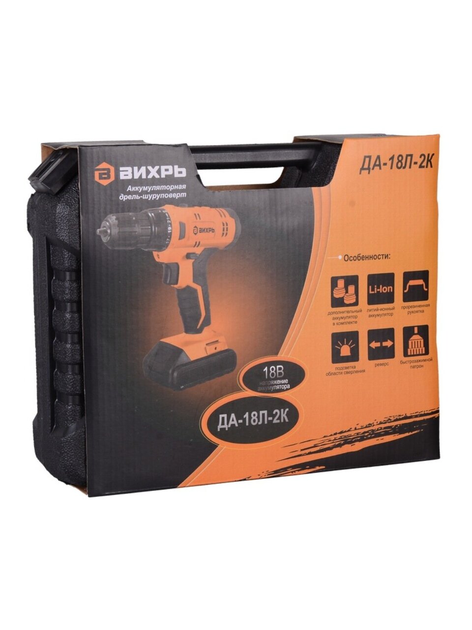 Дрель-шуруповерт ВИХРЬ ДА-18Л-2К используется для сверления отверстий в деревянных, пластмассовых и металлических изделиях или для работы в качестве шуруповерта. Модель оснащена 2 аккумуляторами и кейсом, незаменима для людей, постоянно использующих дрели-шуруповерты в быту.