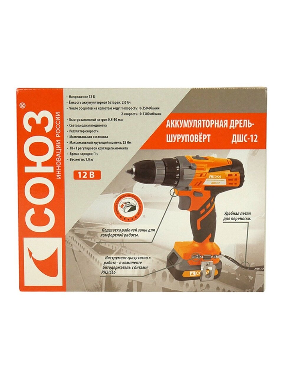 Вы можете приобрести «Дрель-шуруповерт аккумуляторный, Союз, ДШС-12, 12 В, коробка» и другие товары в нашем интернет-магазине в Коврове по низким ценам и с бесплатным самовывозом.