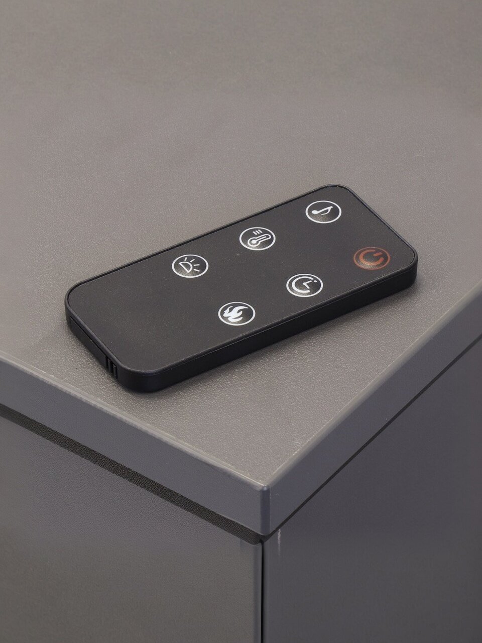 В комплекте — пульт дистанционного управления, термостат, таймер отключения, два уровня регулировки обогрева и реалистичный звуковой эффект.