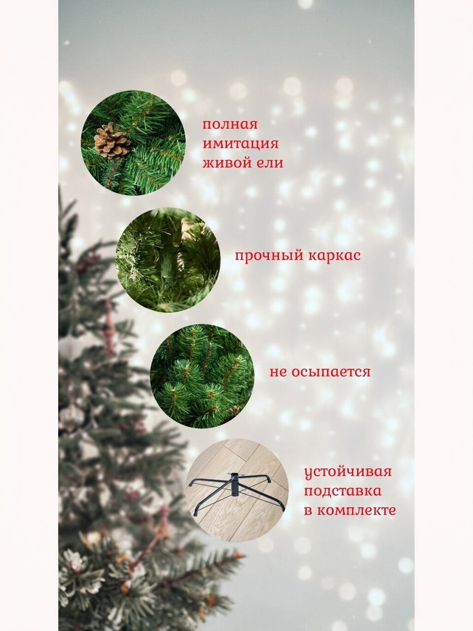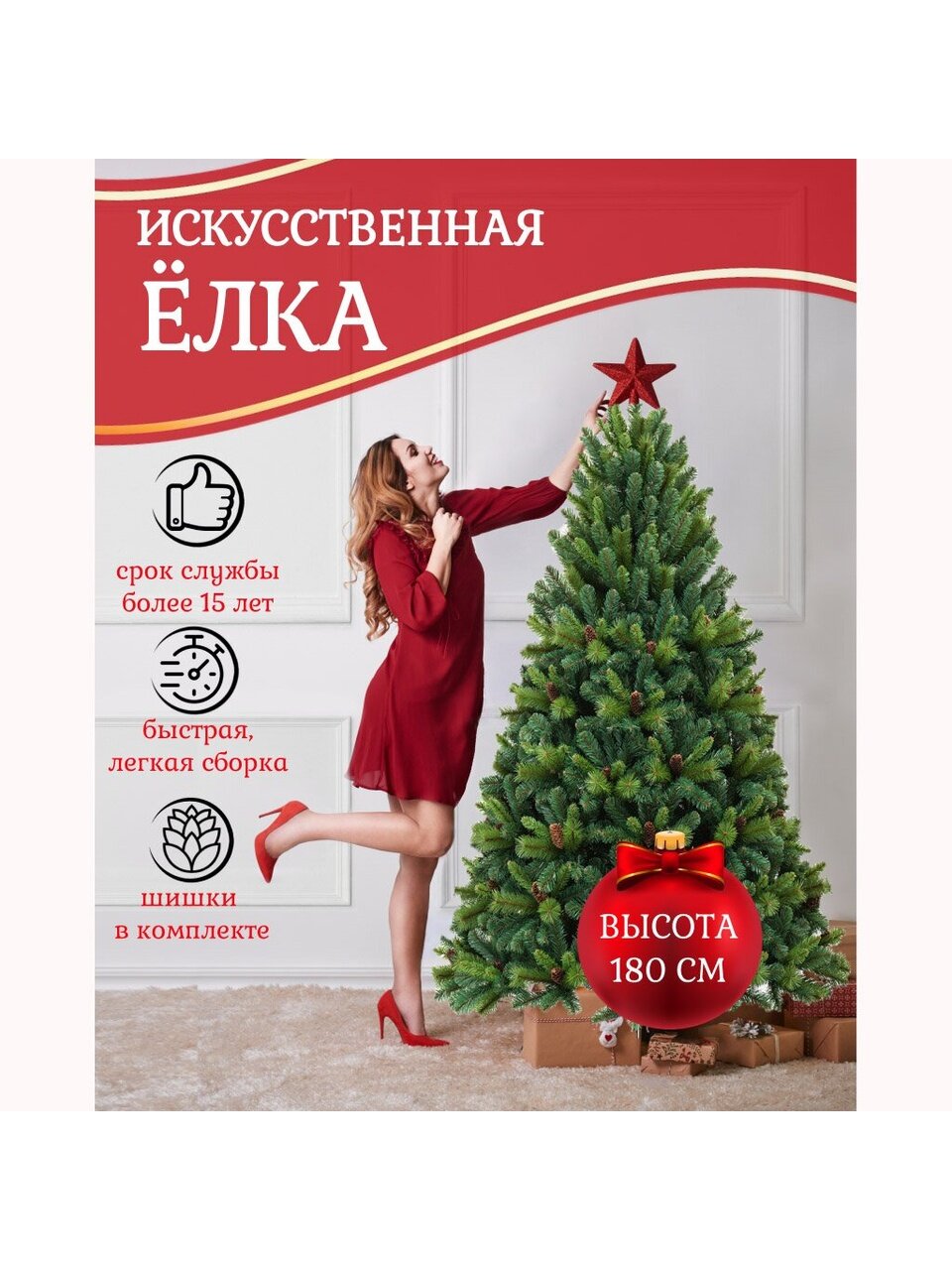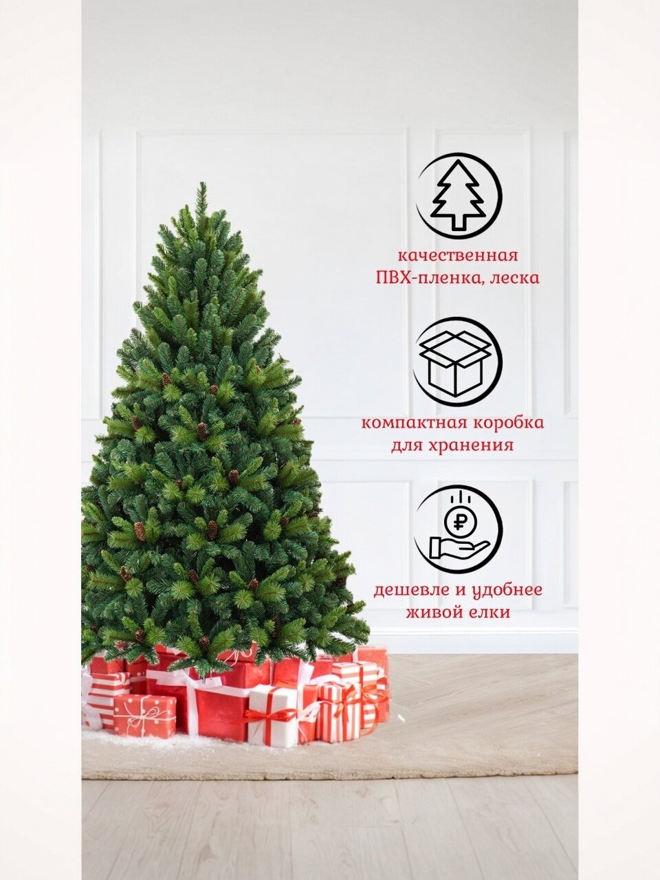Елка новогодняя 180 см Байкальская с шишками — эффектное украшение для дома: реалистичная хвоя, 1064 ветки, сборка за 10 минут, доставка по России.