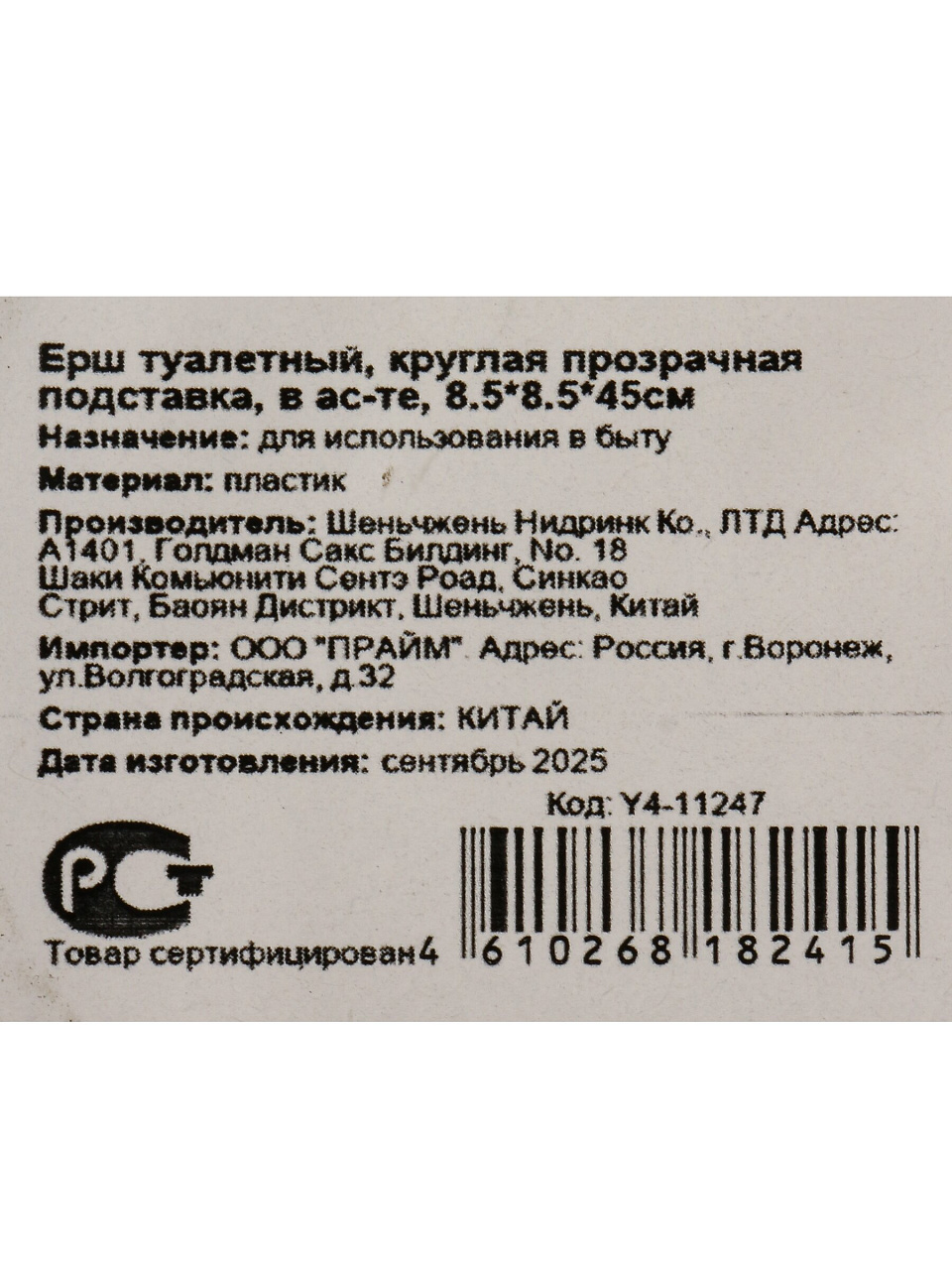 Ерш изготовлен из прозрачного пластика, устойчивого к влаге и чистящим средствам, что обеспечивает долгий срок службы.