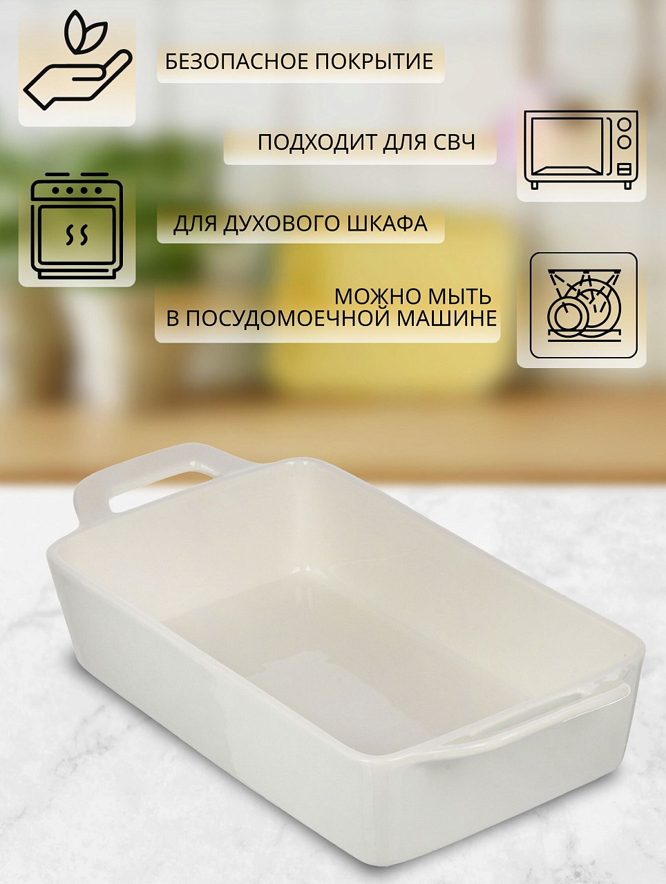 По сравнению с металлическими или стеклянными аналогами, керамика более устойчива к перепадам температур и не вступает в реакцию с пищей. Если вы ищете, какую форму для запекания выбрать для дачи или подарка, обратите внимание на эту модель: она не требует сложного ухода, легко моется, а белый цвет впишется в любой интерьер. Отсутствие крышки и антипригарного слоя компенсируется естественными антипригарными свойствами керамики и возможностью использовать бумагу для выпечки.