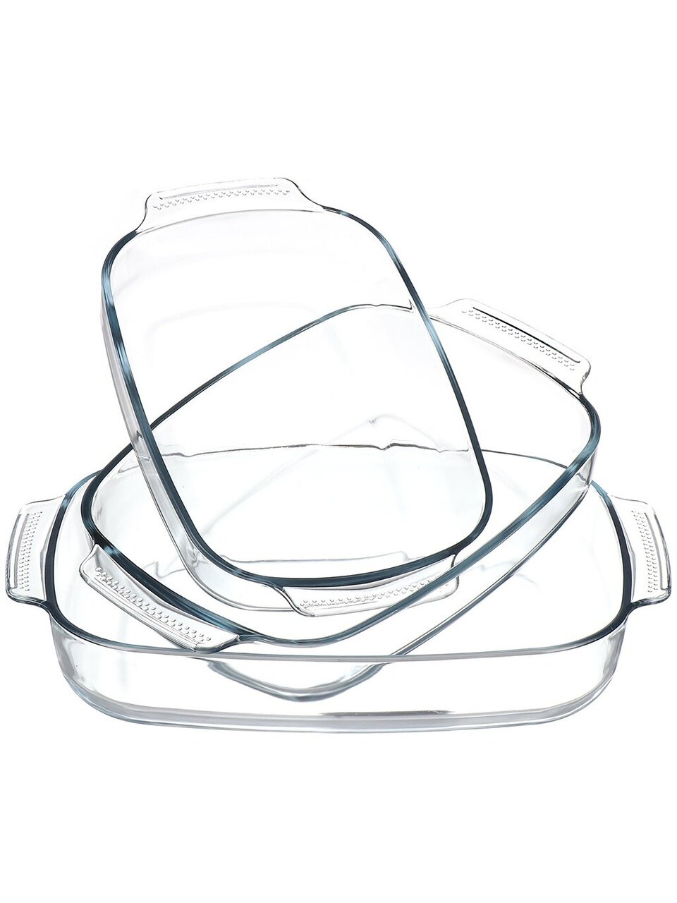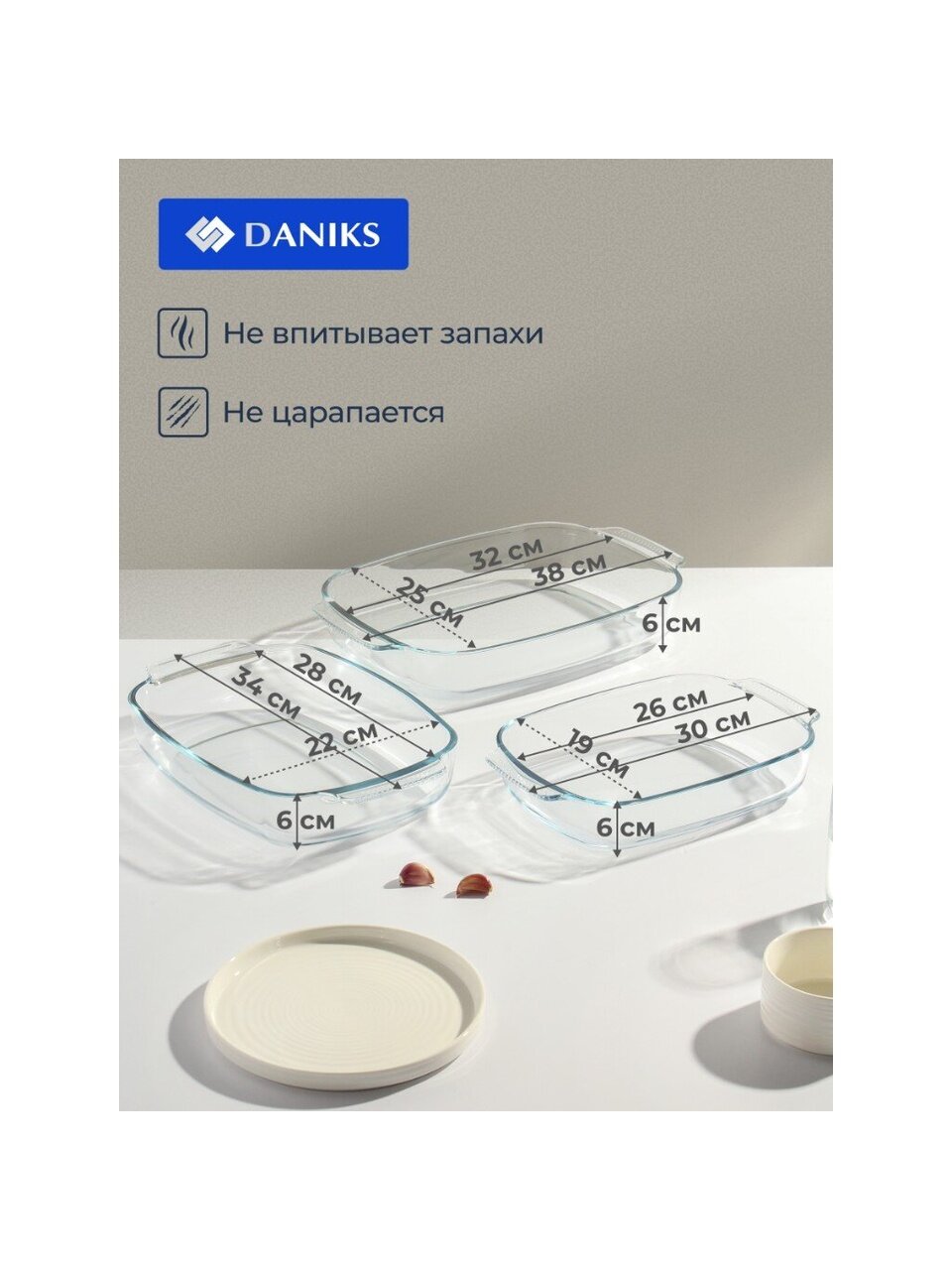 Набор жаропрочной посуды Daniks: 3 прямоугольные формы из стекла (2, 2.9, 3.7 л) — идеальное решение для духовки, СВЧ и сервировки на каждый день.