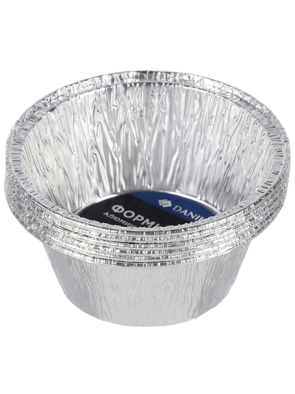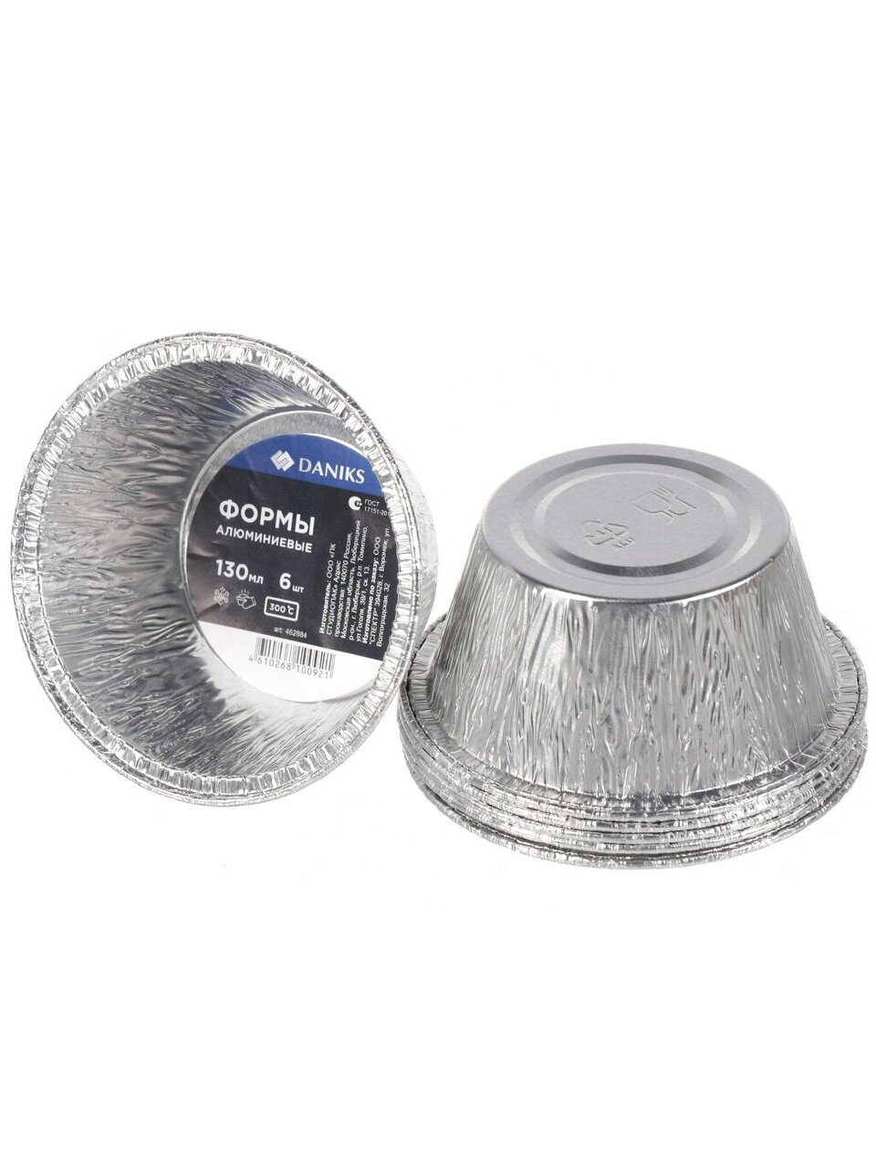 Объём каждой формы — 0,13 л (130 мл), в наборе 6 штук. Круглая форма, без крышек, цвет серебристый.