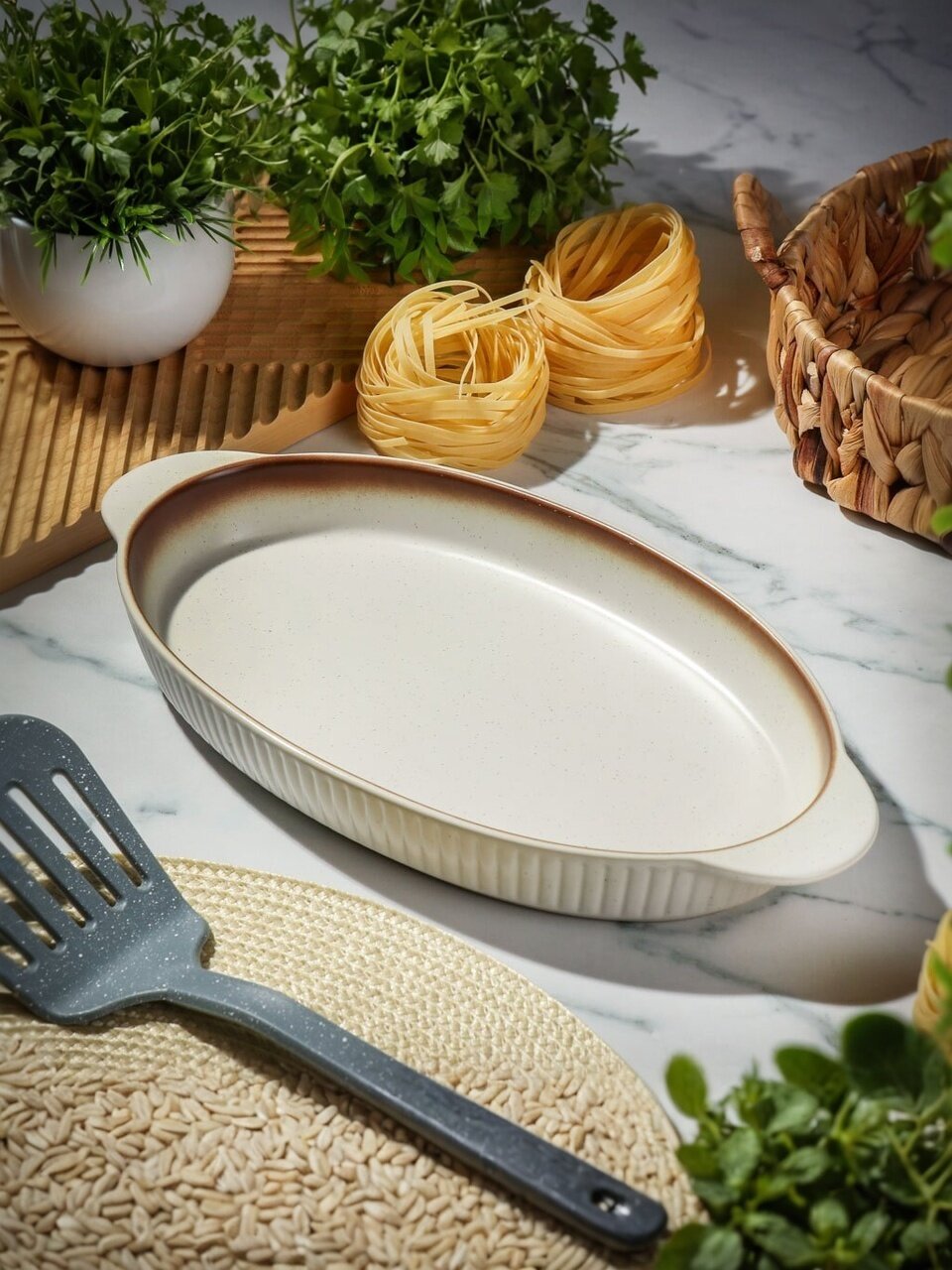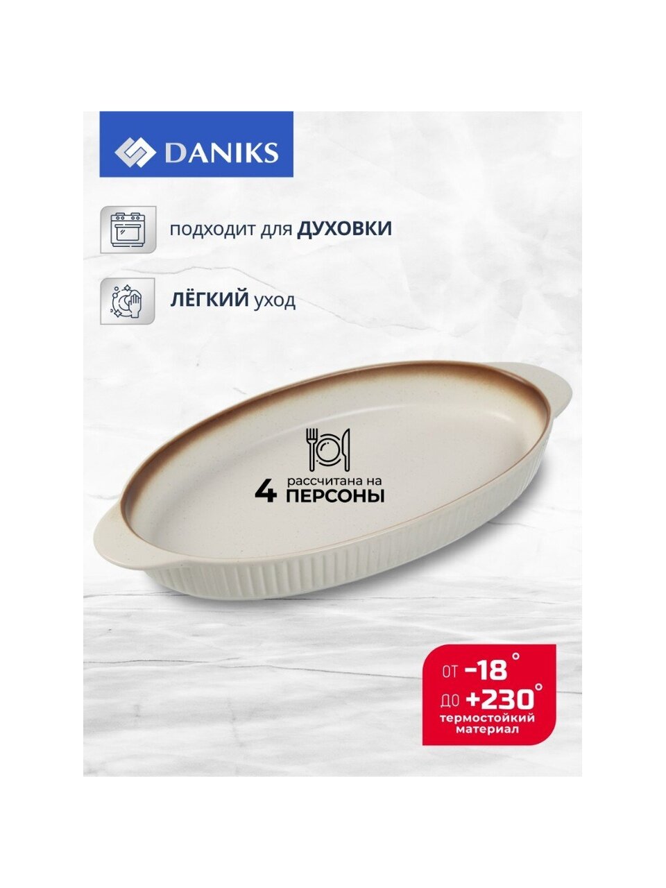 В отличие от металлических аналогов, керамическая форма Daniks не окисляется, не впитывает запахи и легко очищается даже после сложных блюд. Можно мыть в посудомоечной машине, использовать в СВЧ и духовке — это удобно для ежедневного применения и экономии времени. Подходит ли для подарка? Лаконичный бежевый цвет и современный дизайн делают её отличным выбором для любого интерьера кухни.