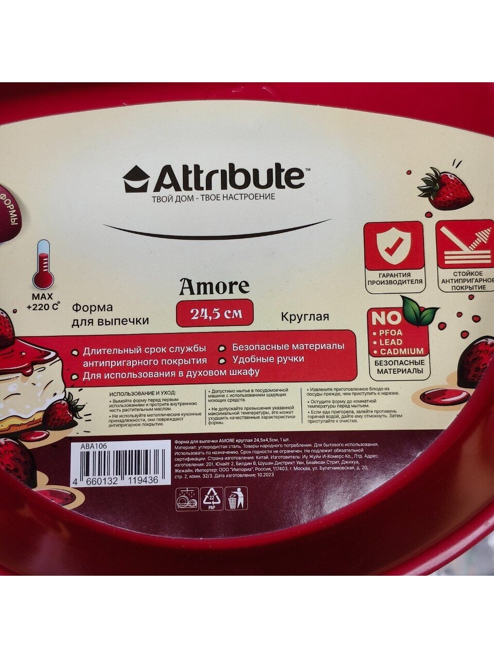Вы можете приобрести «Форма для запекания углеродистая сталь, 25х4.5 см, антипригарное покрытие, круглая, Attribute, Amore, ABA106» и другие товары в нашем интернет-магазине в Серпухове по низким ценам и с бесплатным самовывозом.
