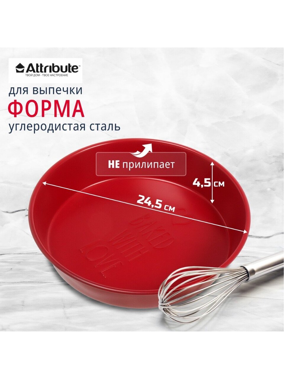 Форма для запекания Attribute Amore, 25 см: антипригарная углеродистая сталь, идеальна для пирогов, мяса и выпечки дома и на даче.
