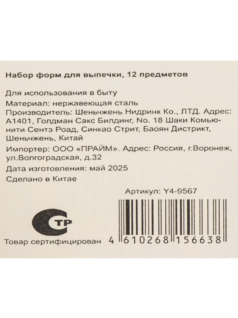 Набор форм для выпечки 12 шт Y4-9567 — создайте идеальную домашнюю выпечку для детей и взрослых. Фигурные формы из нержавеющей стали: удобно, практично, выгодно.