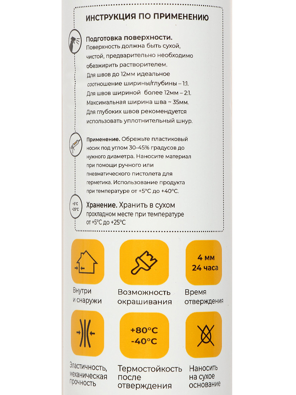 Герметик предназначен для бетона, металла и камня. Он обеспечивает прочное сцепление и надежную герметизацию швов на фасадах, в гараже, на даче.