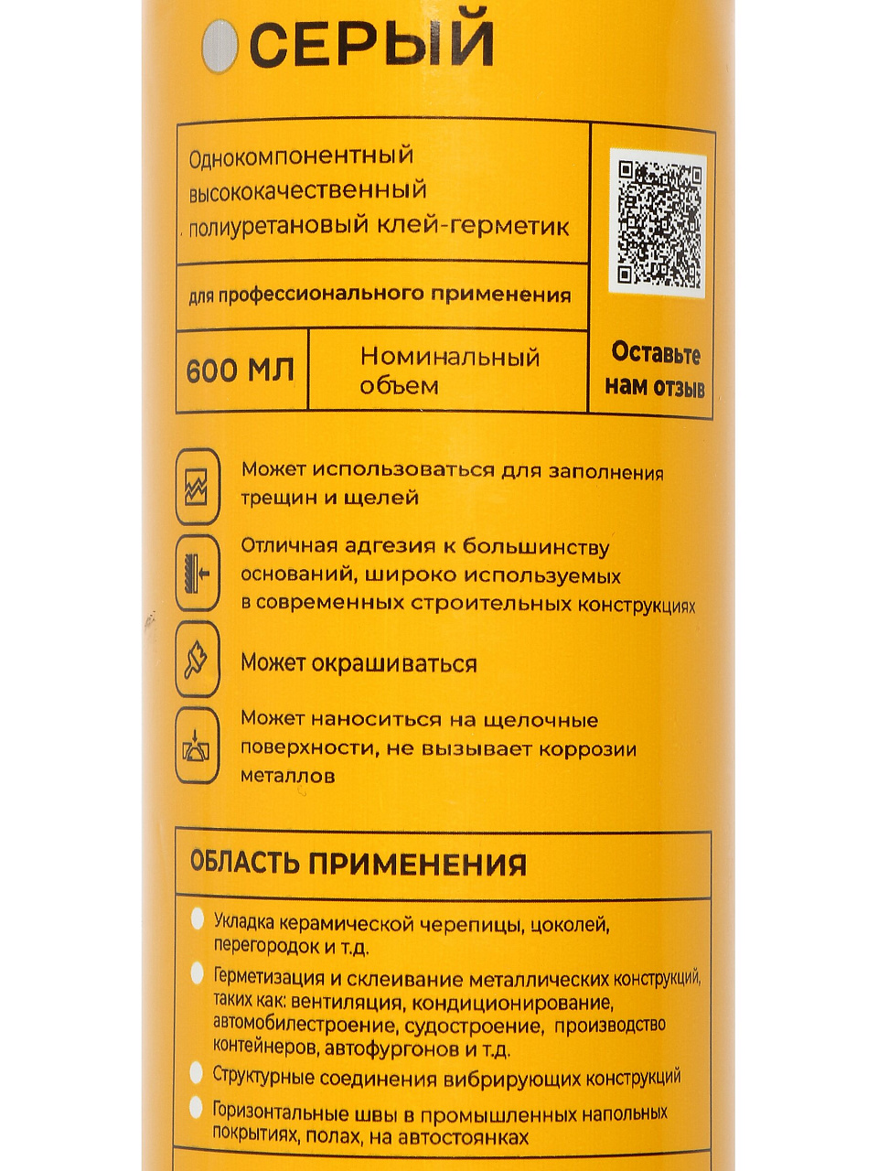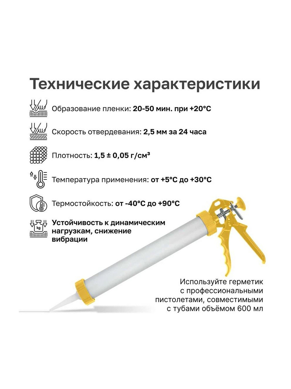 - Универсален: объем 600 мл, подходит для герметизации швов на бетоне, металле, камне.