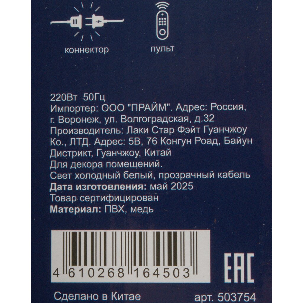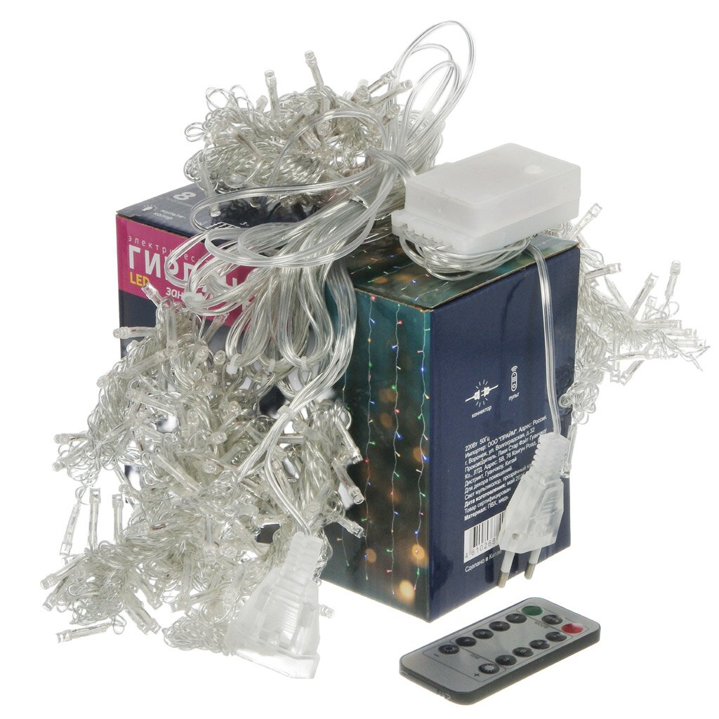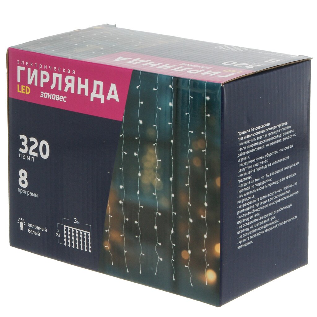 Гирлянда 320ламп, 3х2 м, 8 реж, Занавес, свет холод бел, прозрач, сет, пульт, LED