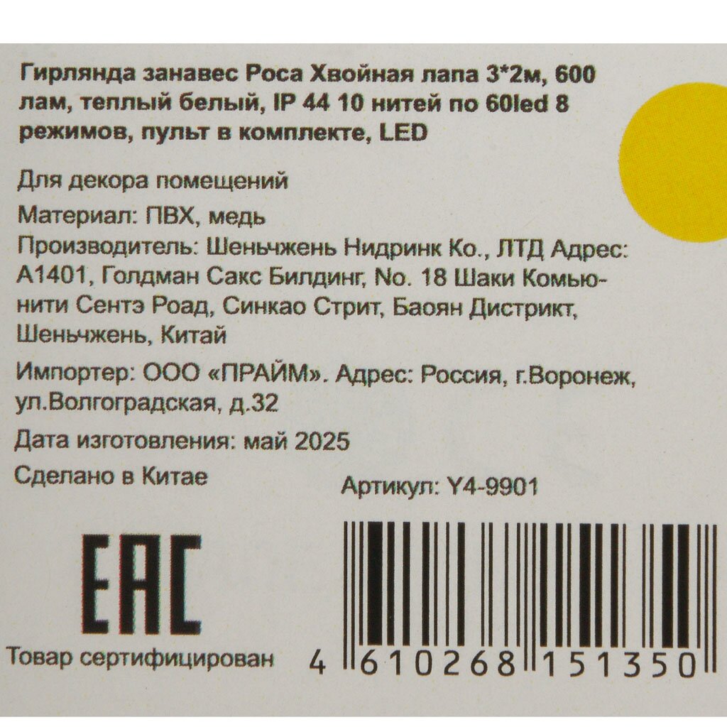 Вы можете приобрести «Гирлянда занавес Роса, 600 ламп, Хвойная лапа 3Х2м, теплый белый, 10 нитей по 60led, 8 режимов, пуль» и другие товары в нашем интернет-магазине в Клинцах по низким ценам и с бесплатным самовывозом.
