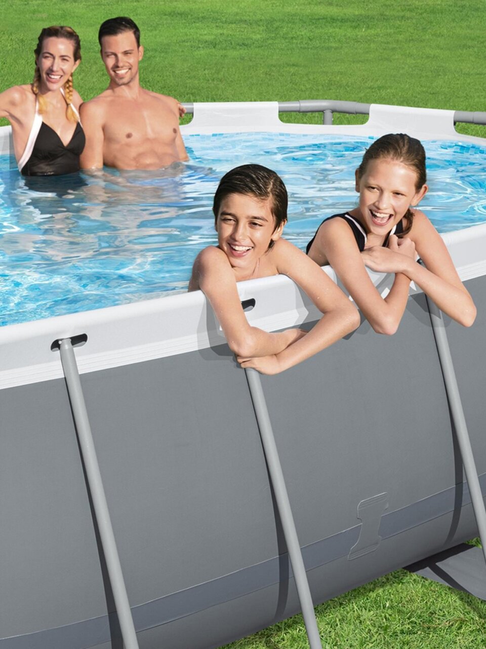 Если вы спрашиваете, подходит ли этот бассейн для детей, — да, бортик 100 см обеспечивает безопасность, а овальная форма удобна для игр и плавания. Как выбрать размер каркасного бассейна? Для семьи из 3-5 человек данный вариант — оптимальный компромисс между вместимостью и простотой монтажа.