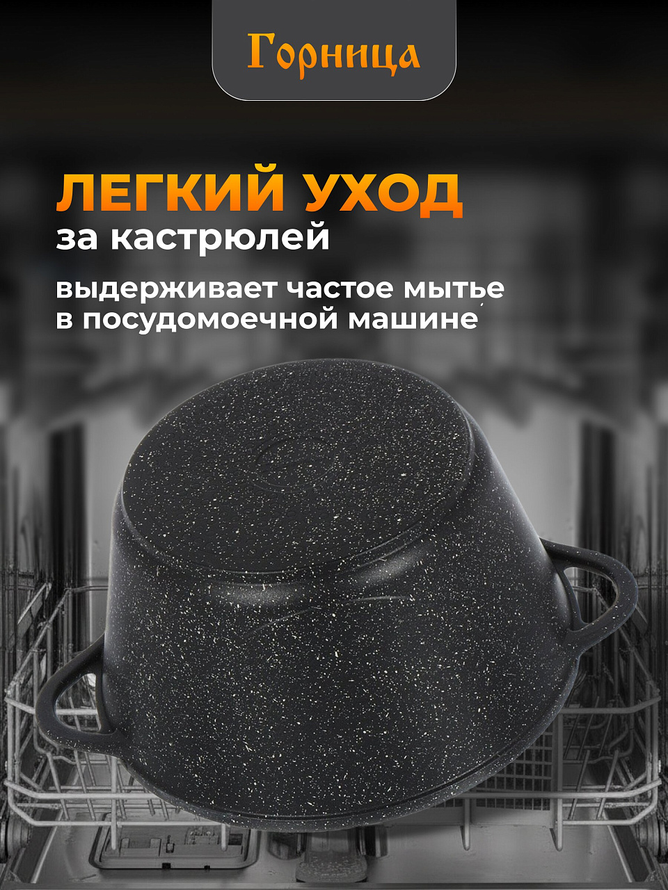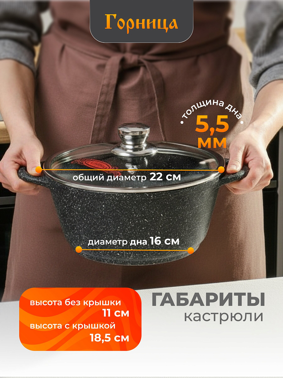 Как выбрать кастрюлю для индукционной плиты? Горница Гранит Induction — современное решение для тех, кто ценит удобство и долговечность. Благодаря толстому дну (5,5 мм) тепло распределяется равномерно, что важно для приготовления каш, плова, макарон, пюре и других повседневных блюд. Антипригарное покрытие гранитного типа обеспечивает лёгкость в уходе и позволяет готовить с минимальным количеством масла.