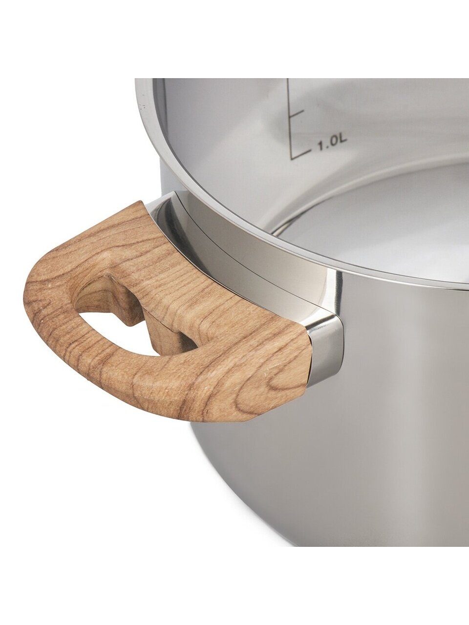 Кастрюля Daniks Осло 2.9 л — это универсальный выбор для тех, кто ищет купить недорого кастрюлю для дачи, квартиры или в подарок. Корпус из нержавеющей стали устойчив к коррозии и не впитывает запахи, а толстое дно (2 мм) предотвращает пригорание и обеспечивает равномерный прогрев. Благодаря стеклянной крышке с выпускным клапаном удобно следить за процессом варки, не теряя тепло и влагу. Мерная шкала внутри облегчает дозировку ингредиентов — это особенно ценно для приготовления супов, каш и соусов.