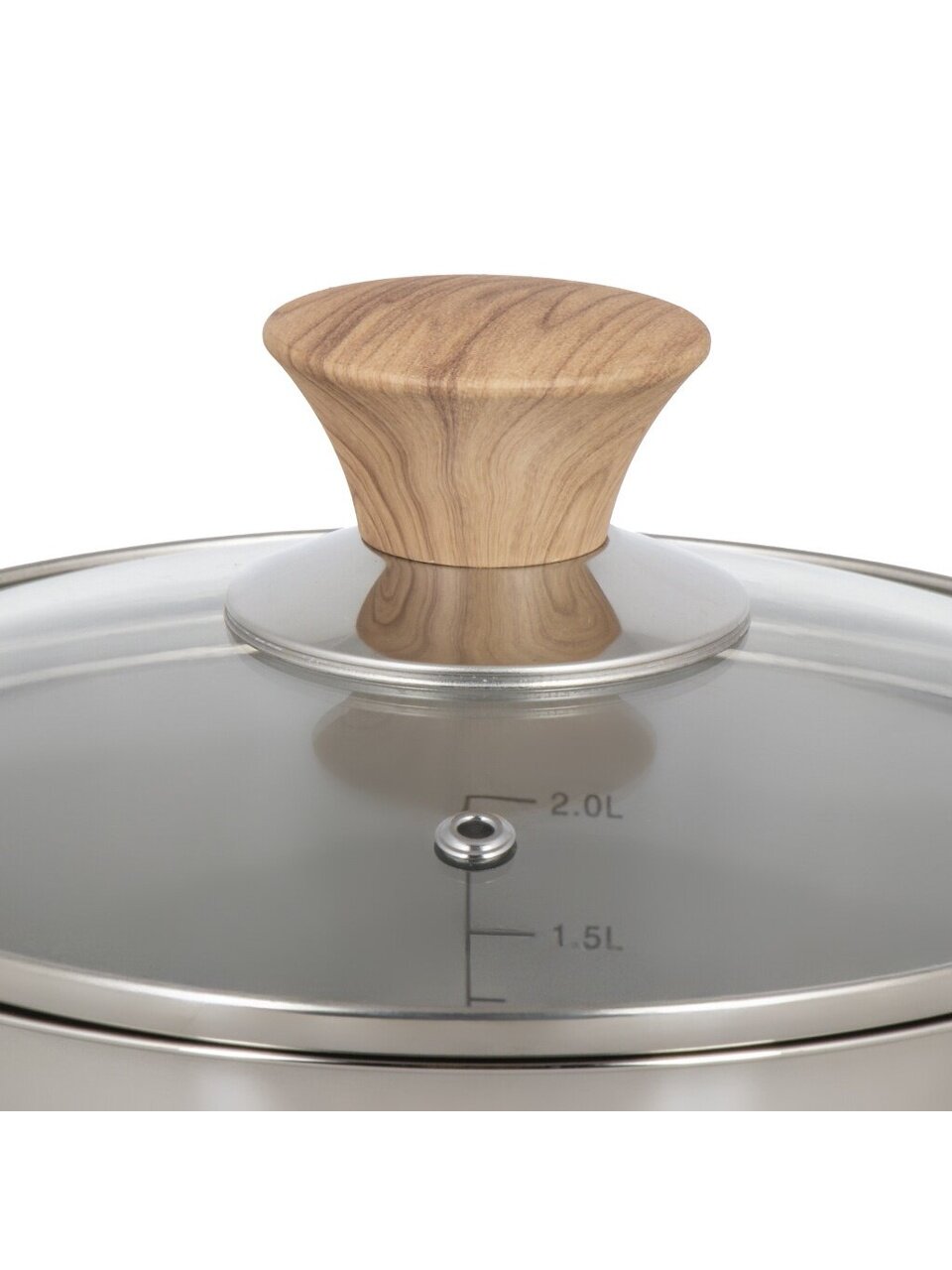 - Оптимальный объём 2.9 л и диаметр 18 см — удобно для повседневной готовки, долговечная нержавеющая сталь, стеклянная крышка с клапаном;