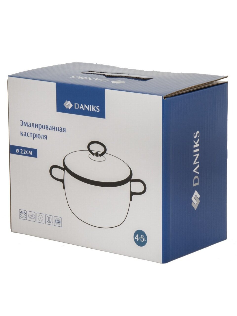 Кастрюля эмалированная сталь Daniks 4.5 л — оптимальный выбор, если вы ищете, какую кастрюлю купить для индукционной плиты или чем отличается эмалированная посуда от обычной. Благодаря прочной эмалированной стали без антипригарного покрытия кастрюля устойчива к царапинам, не впитывает запахи и легко очищается. Стеклянная крышка с выпускным клапаном позволяет контролировать процесс приготовления и предотвращает выкипание. Диаметр 22 см и объем 4.5 литра подходят для супов, каш, макарон и пельменей — идеальный вариант для семьи или небольших компаний.