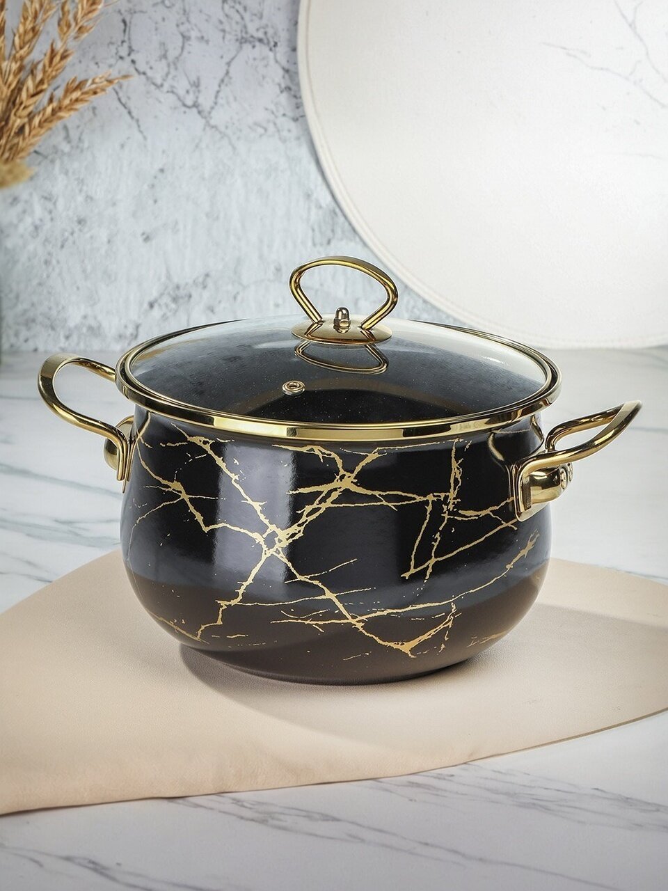 Кастрюля Daniks 4.5 л Черный мрамор: для индукции, стеклянная крышка, стиль и практичность для идеальных домашних блюд
