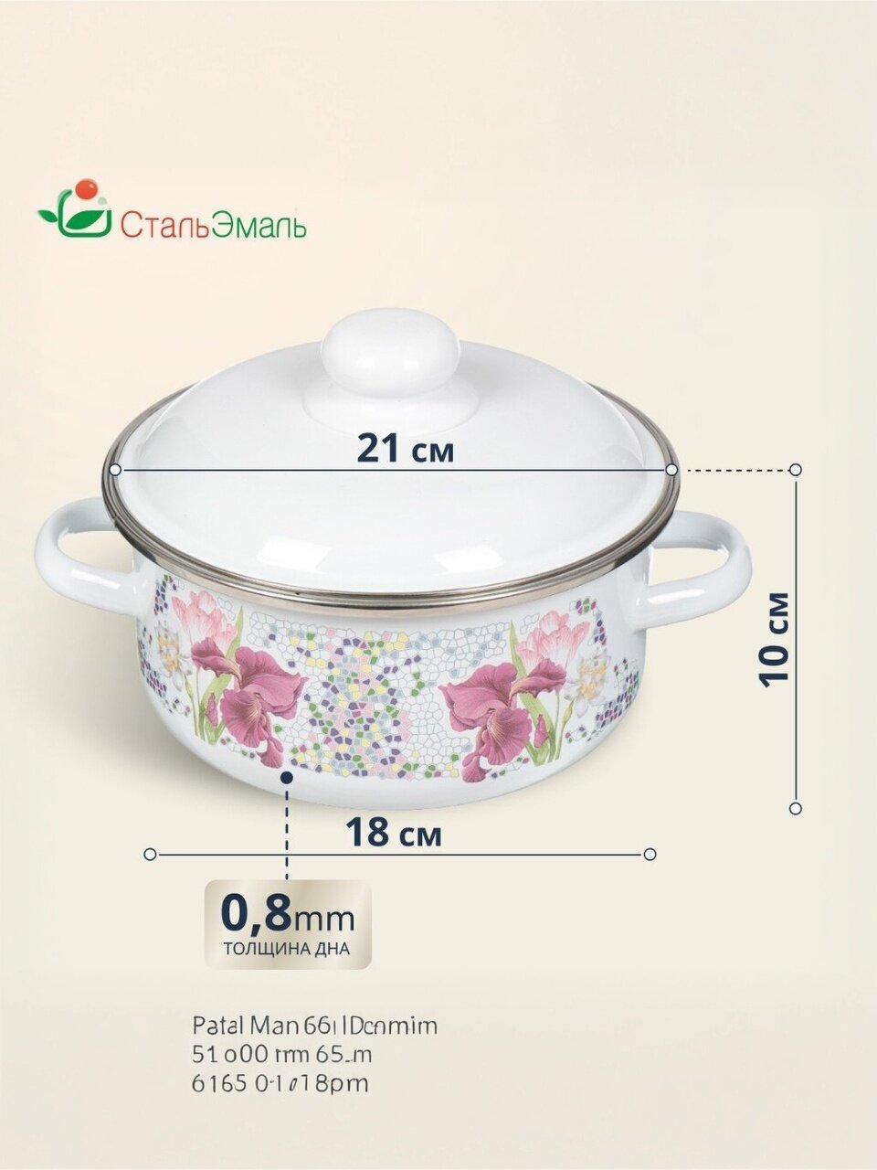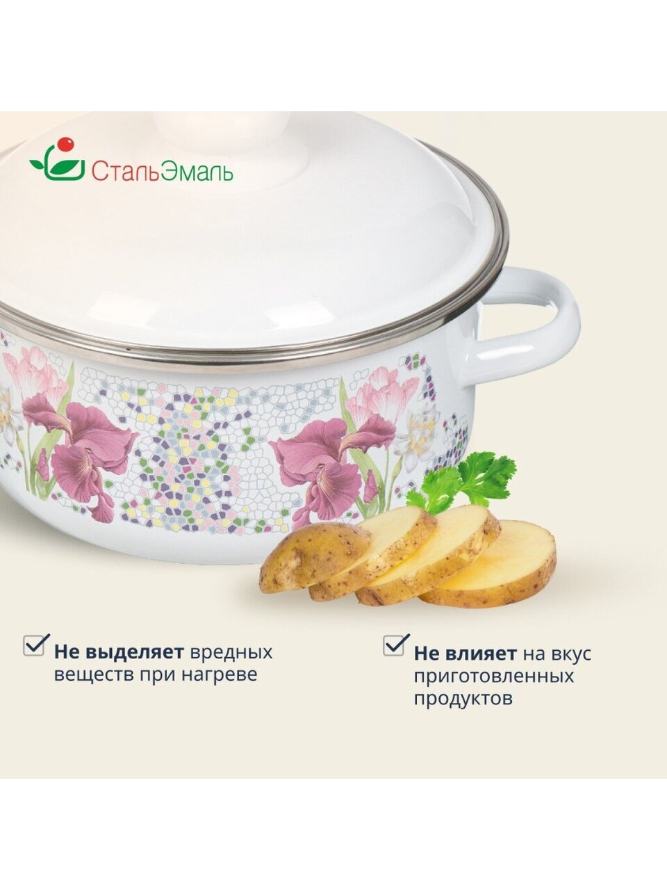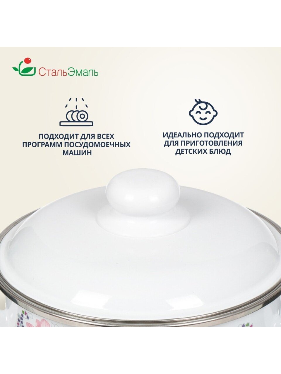Эмалированная кастрюля 2 л СтальЭмаль «Мозаика белоснежная» — идеальный выбор для дома и дачи: подходит для индукционных плит, долговечна, легко мыть.
