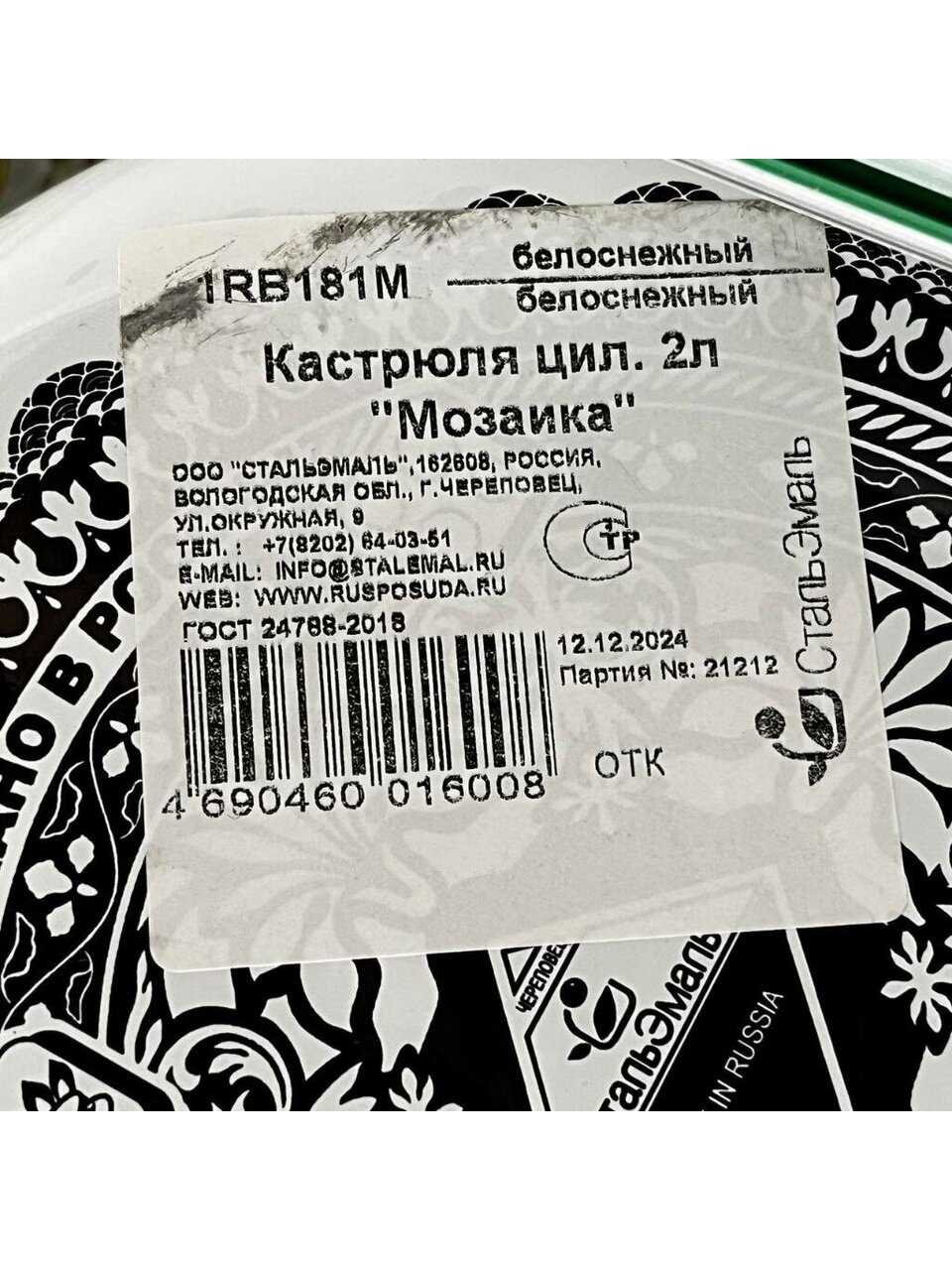 Вы можете приобрести «Кастрюля эмалированная сталь, 2 л, крышка сталь, цилиндрическая, СтальЭмаль, Мозаика белоснежная, 1RB181M, индукция» и другие товары в нашем интернет-магазине в Тамбове по низким ценам и с бесплатным самовывозом.
