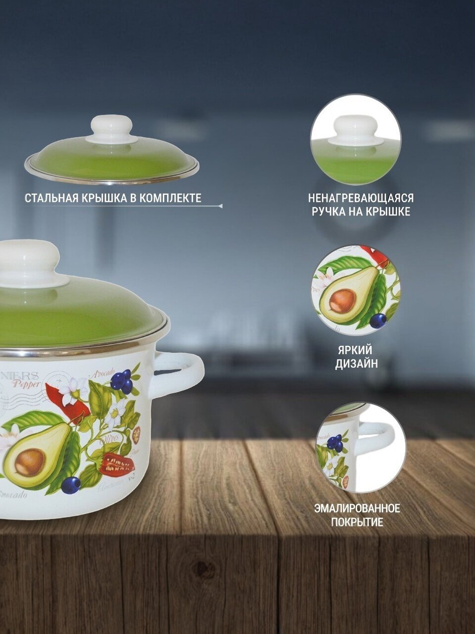 Эмалированная кастрюля 3 л СтальЭмаль «Авокадо» — идеальный выбор для дома и дачи: долговечная сталь, стильный дизайн, выгодная цена