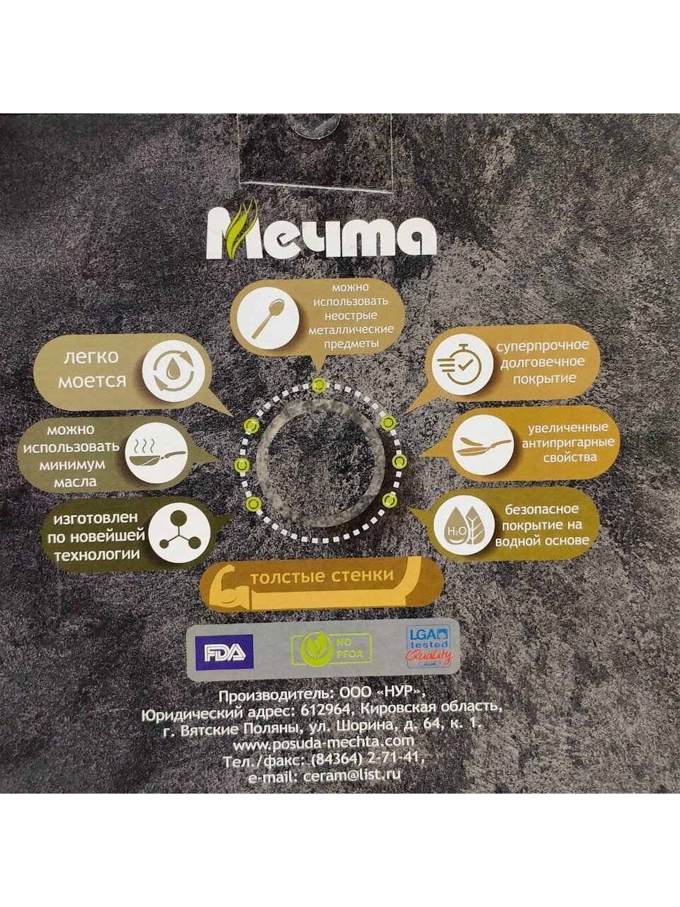 Кастрюля Мечта Premium grey на 3 литра — это выбор пользователей, ищущих долговечную посуду с антипригарным покрытием для ежедневного приготовления супов, каш, плова и пюре. Благодаря толстому алюминиевому дну (6 мм) тепло распределяется равномерно, что предотвращает подгорание блюд и экономит энергию. Кастрюля легко очищается вручную и в посудомоечной машине, а стеклянная крышка с выпускным клапаном позволяет контролировать процесс готовки без лишних хлопот.