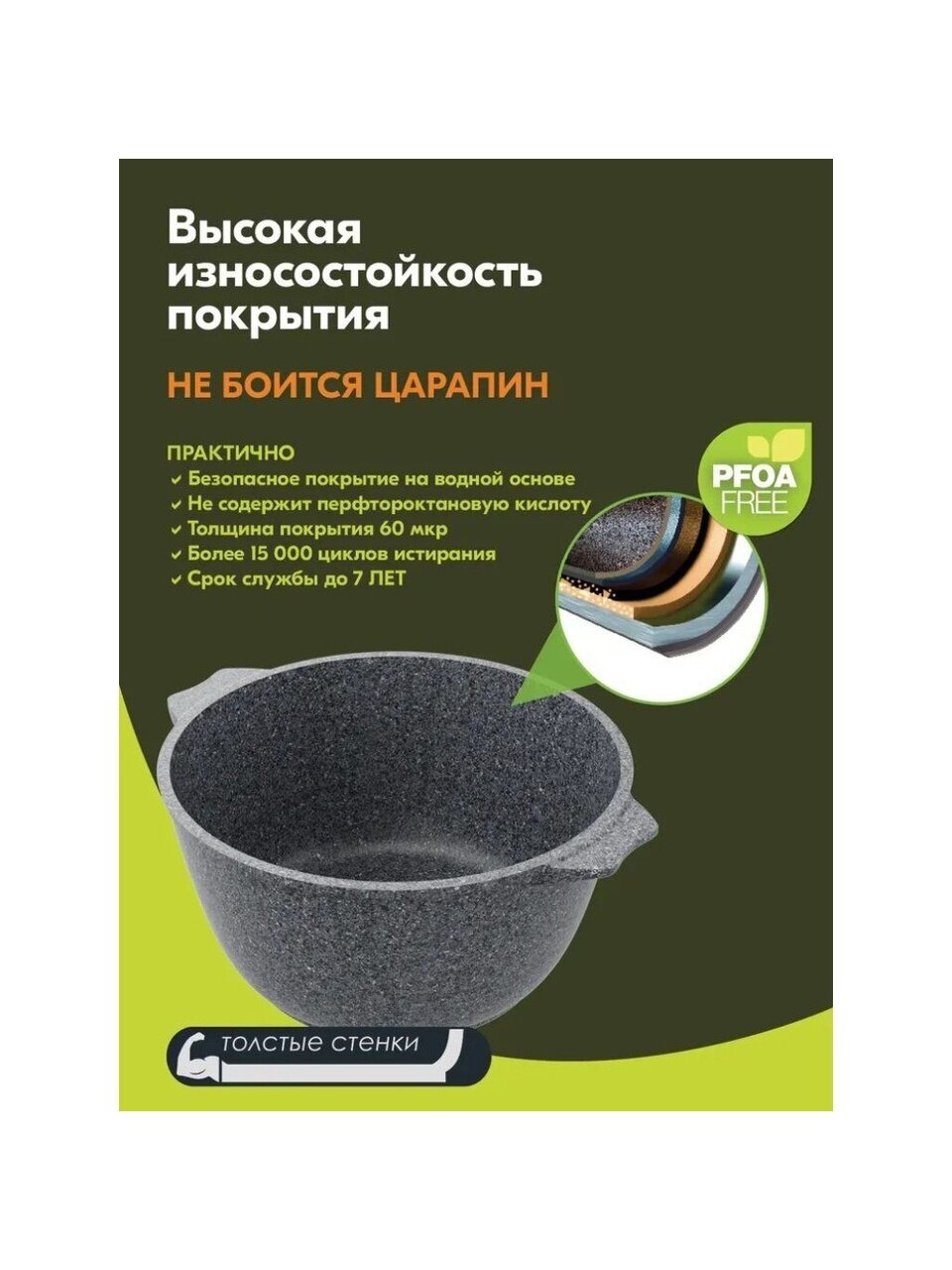 Кастрюля 3 л Мечта Premium grey — антипригарное покрытие, стеклянная крышка, универсальное решение для кухни и дачи. Готовьте легко, мойте быстро!